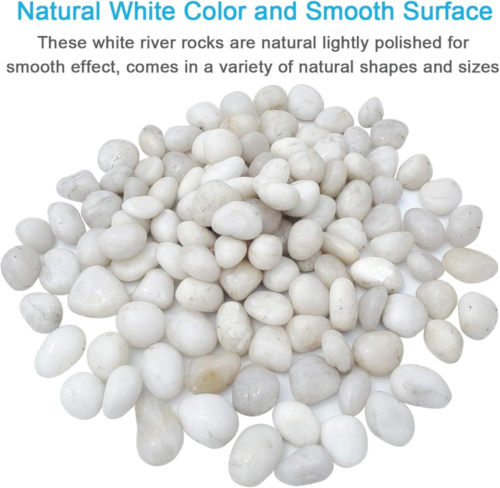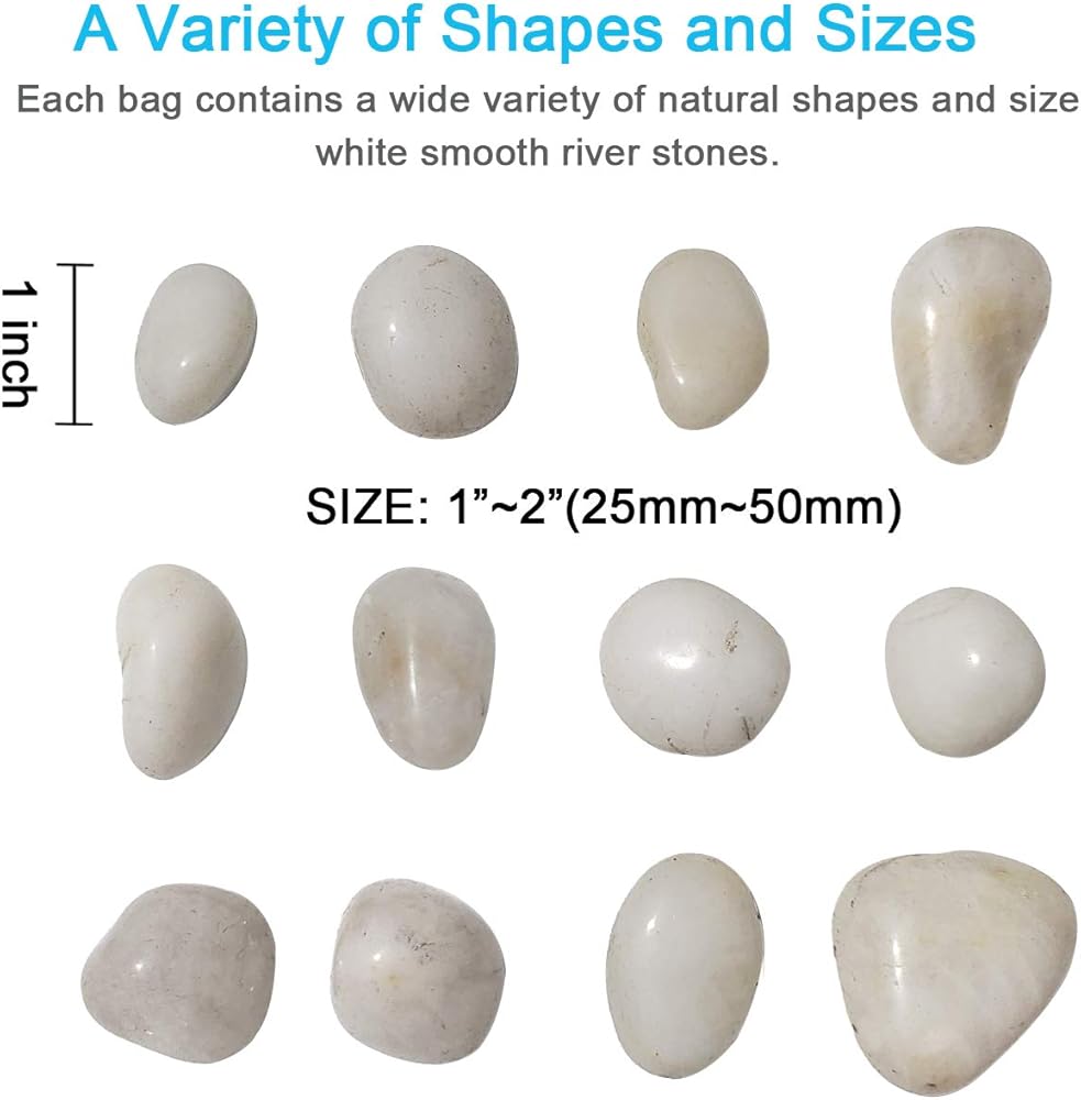 【أحجار بيضاء طبيعية】: هذه الصخور النهر البيضاء مصقولة بشكل طبيعي بشكل خفيف لتأثير سلس، وتأتي في مجموعة متنوعة من الأشكال والمقاسات الطبيعية (حوالي 2.54 سم إلى 5.08 سم). هذه الصخور طبيعية ونتيجة لذلك يمكن أن ينكسر أو خارج الشكل، بيضاوية أو دائرية، سميك أو رقيق.