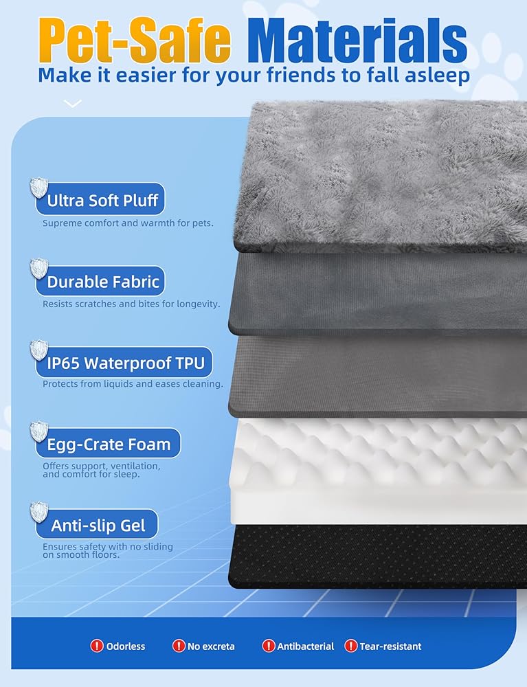 [متعدد الوظائف] يعتبر سرير الكلاب القوي هذا مثاليًا للكلاب الكبيرة التي يصل وزنها إلى 95 رطلاً. استخدمه كسرير قفص للحيوانات الأليفة، أو وسادة للكلاب، أو سرير بيت الكلب، أو مرتبة للكلاب، أو سرير قفص، أو وسادة قفص، أو سرير سفر، أو سرير خارجي في سيارة أو شاحنة.