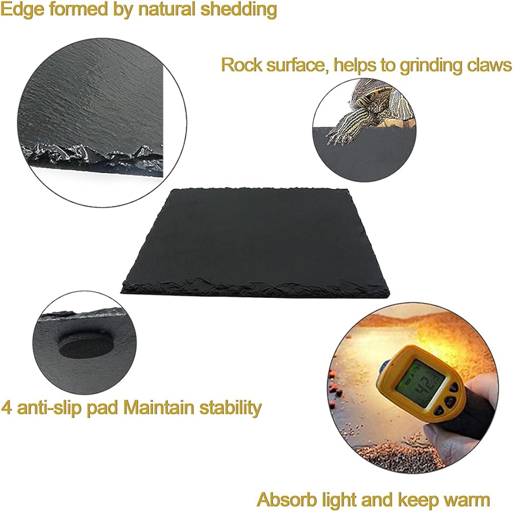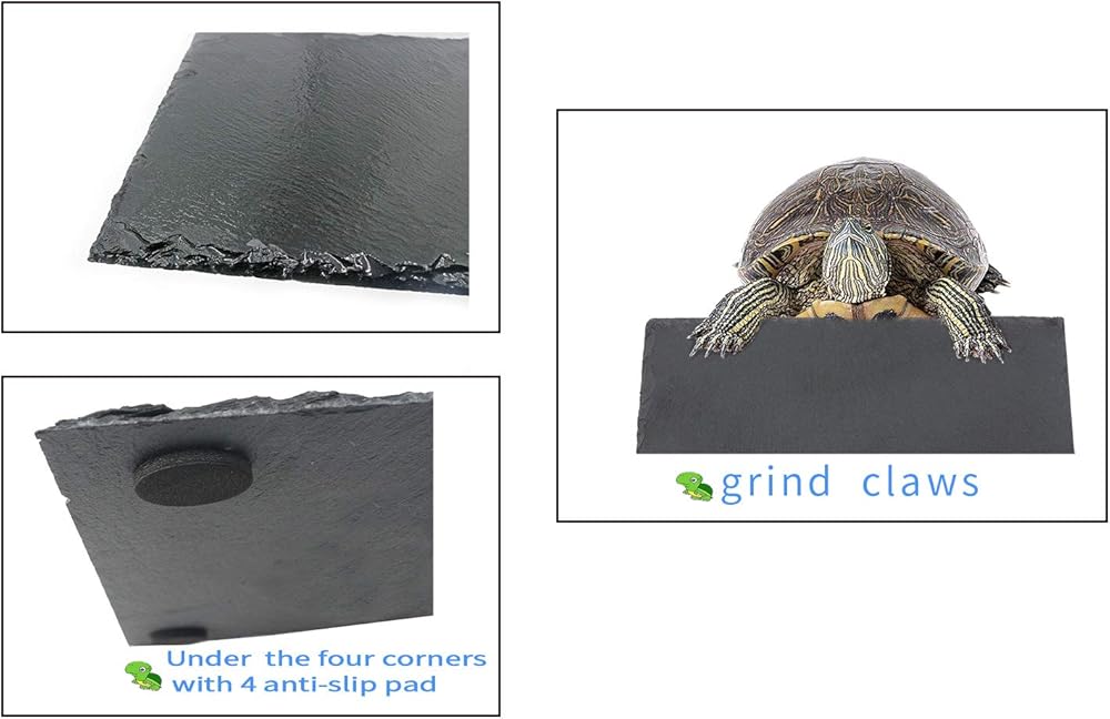 يمكن لمنصة السلحفاة طحن المخالب ولن تضر جلد الزواحف. عندما تزحف عليها، سيكون للاحتكاك تأثير تدليك بسيط على جسمها. اشطفها بالماء وامسحها بمنشفة مبللة لإكمال تنظيف سطح الأردواز.