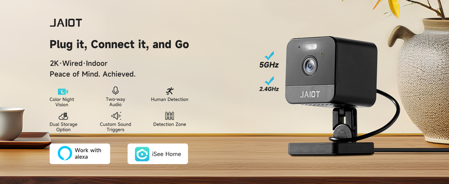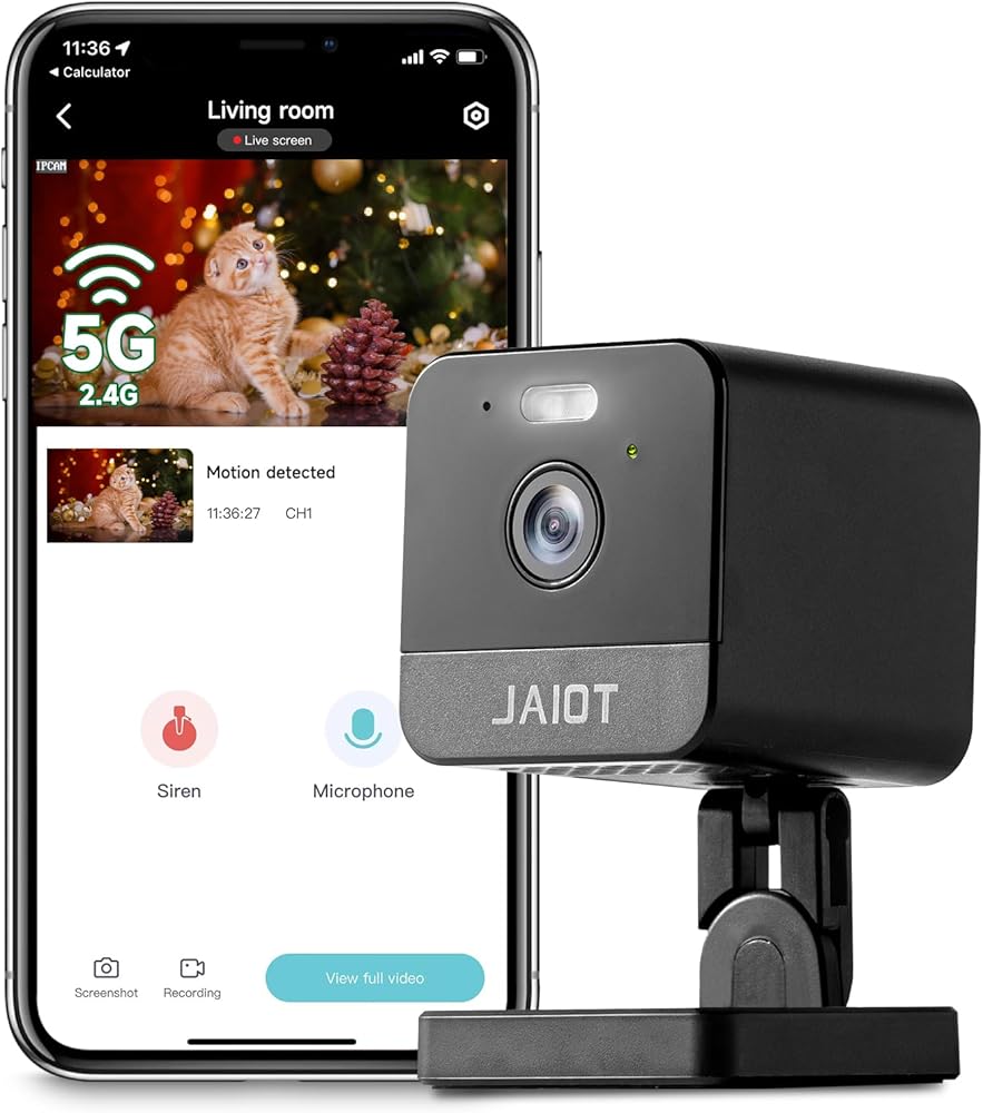 كاميرا JAIOT 2024 الجديدة 5G WiFi الداخلية، كاميرا 2K للحيوانات الأليفة مع تطبيق الهاتف، كاميرات 5G&2.4G لأمن المنزل، رؤية ليلية ملونة، كشف الحركة، سهلة الضبط، صوت ثنائي الاتجاه، تعمل مع Alexa