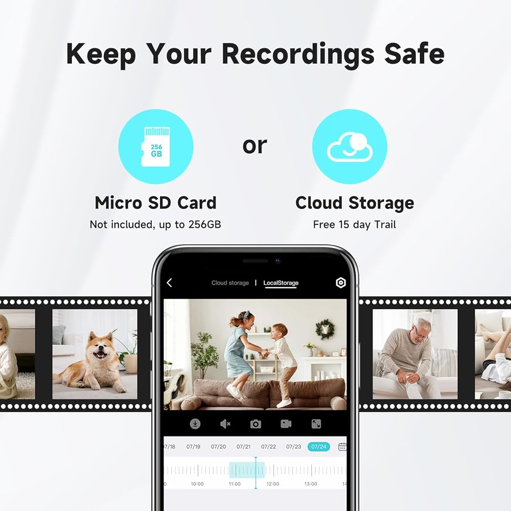 ✅[تخزين بطاقات سحابية وبطاقات SD] تدعم هذه الكاميرات الخاصة بالأمان المنزلي تخزين التسجيل باستخدام بطاقة Micro SD (غير متضمنة، تصل إلى 256 جيجابايت) أو التخزين السحابي (تحتاج إلى اشتراك). تضمن وظيفة البث المباشر والتسجيل وتشغيل الفيديو على مدار الساعة طوال أيام الأسبوع إمكانية مشاهدة ما يحدث أو ما حدث في منزلك، وعدم تفويت أي حركات مهمة.