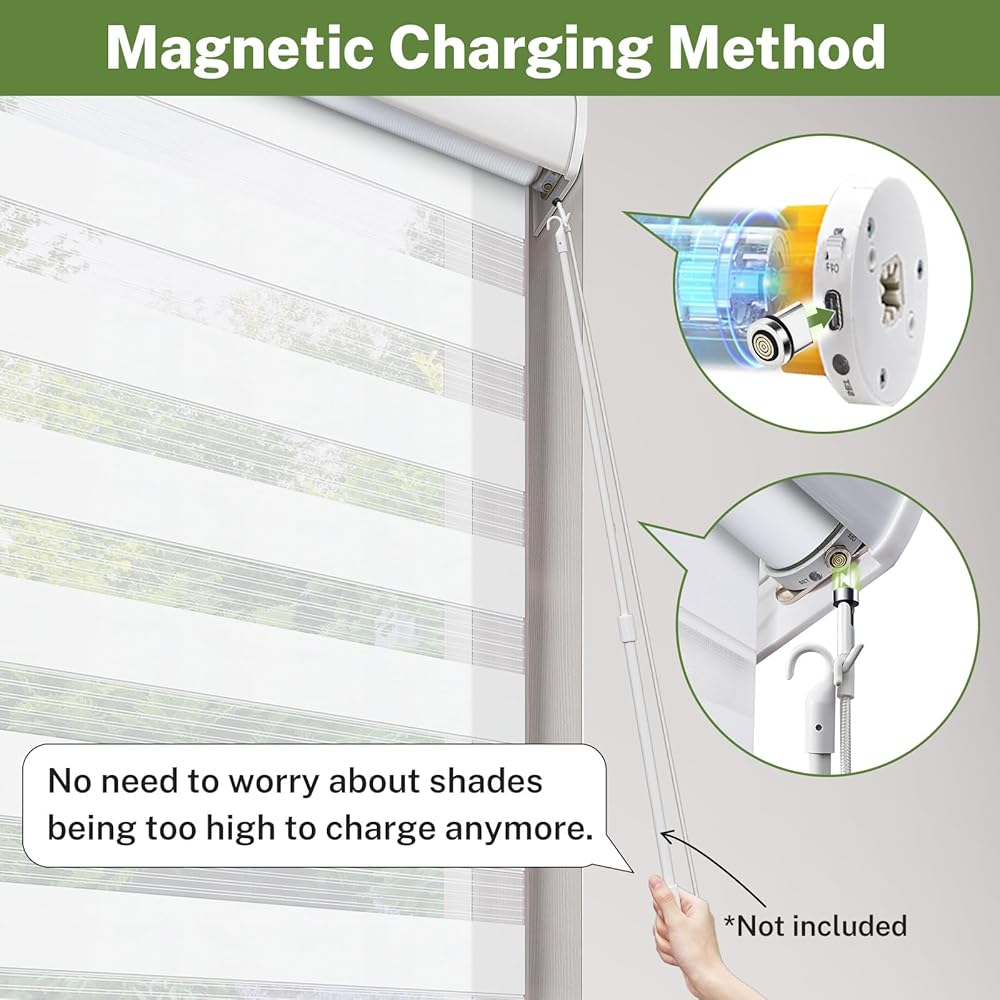 • 【Only for motorized shade】This charging cable is only intended for charging the motor of motorized roller/zebra/cellular shades. Please do not use this charging cable to charge your mobile devices.