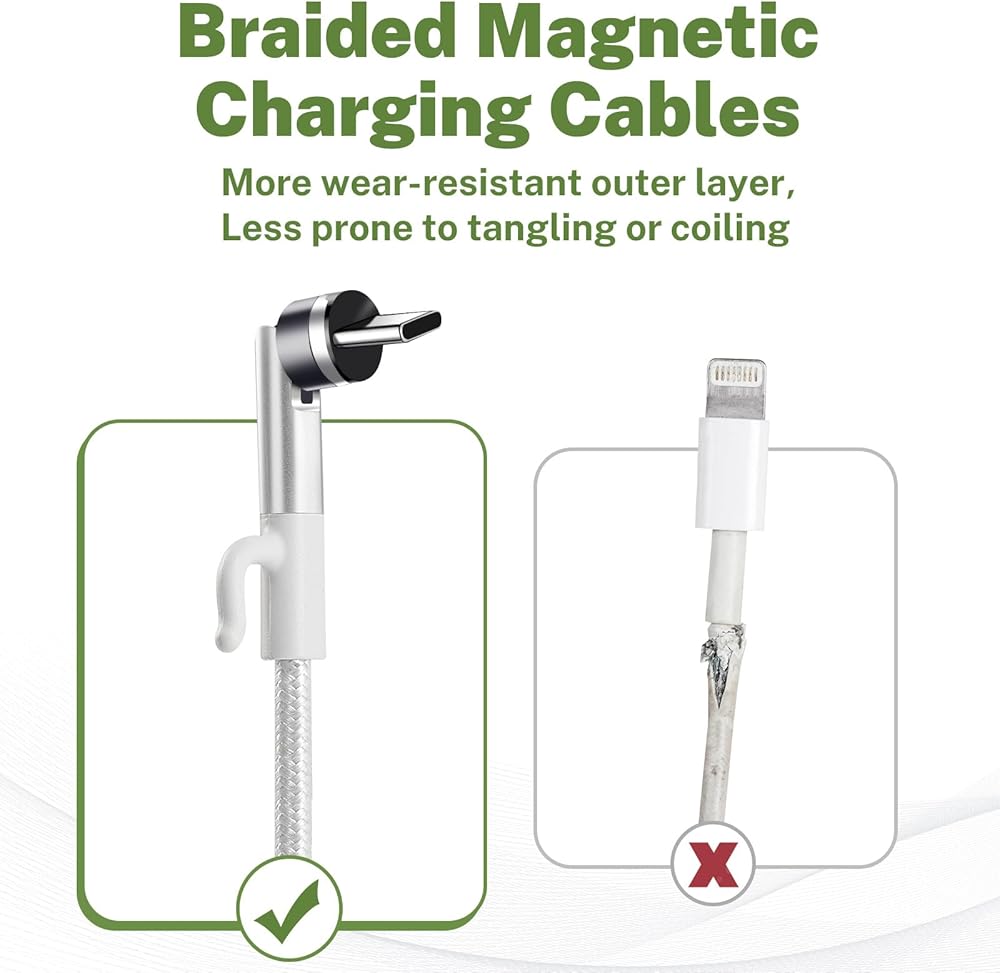 • 【Magnetic Connection】 Magnetic charging cables have magnetic connectors that make it easy to connect and disconnect. Simply bring the connector close to the device's charging port, and the magnetic attraction will automatically join them, eliminating the need for manual plugging and reducing wear and tear.