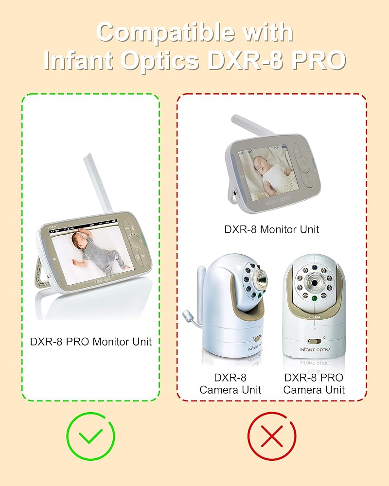 【متوافق مع شاحن بصريات الأطفال】متوافق فقط مع DXR-8 برو، وليس لـ DXR-8؛ متوافق فقط مع وحدة الشاشة (وحدة الوالدين مع الشاشة)، وليس لوحدة الكاميرا.