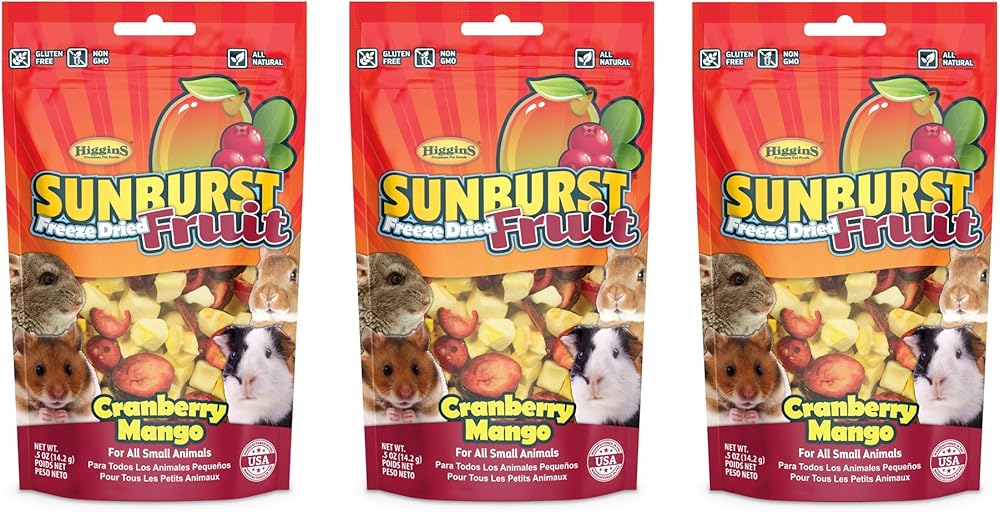 مانجو التوت البري من هيجينز سنبورست، 0.5 أونصة، فواكه مجففة بالتجميد لجميع الحيوانات الصغيرة (3 عبوات - 0.5 أونصة)