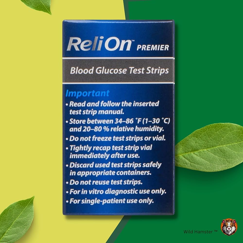 DO NOT REUSE TEST STRIPS - ReliOn Premier Blood Glucose Test Strips are designed for single use only. Reusing them can lead to inaccurate results and pose health risks. Always use a fresh strip for each test.