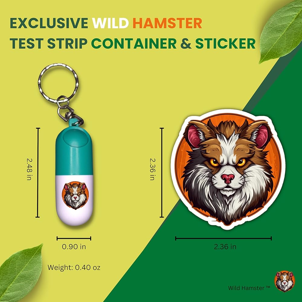 EXLUSIVE GIFTS - As a token of our appreciation for choosing us, we are delighted to offer you an exclusive Wild Hamster test strip container and sticker with every purchase you make. This charming addition is our way of saying thank you and providing you with a little extra joy and functionality to enhance your experience. Carry your essential test strips in style with the adorable keychain container, while the sticker adds a touch of whimsy to your belongings.