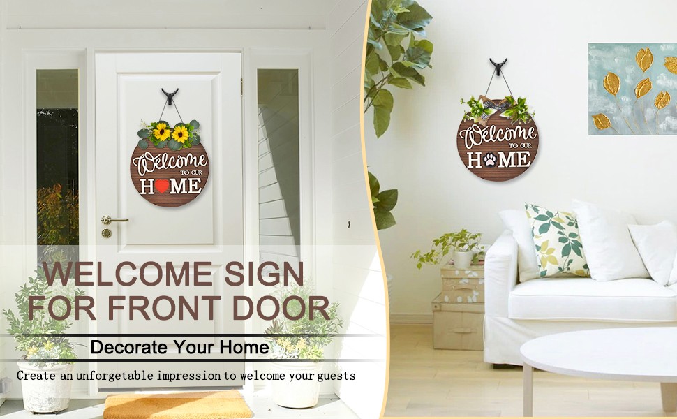 Beautiful Handmade Design - Our welcome sign is handmade with great attention to detail and features beautiful calligraphy and a charming, rustic design to warmly welcome your guests. The letter “Welcome” is printed with 3D effect in a classical script, which makes it unique and attractive, even from a distance. More reassuringly, the replaced the “O” position magnetic with Hook & Loop tape to avoid falling down constantly and rusting.