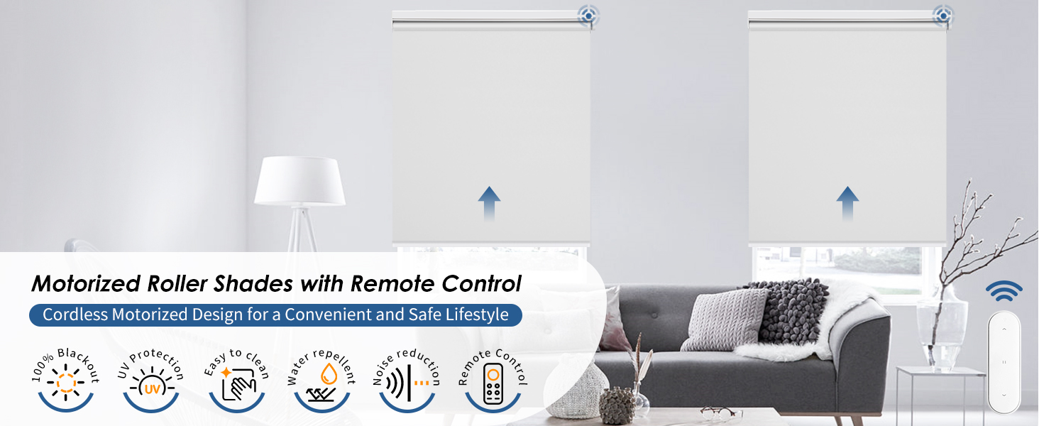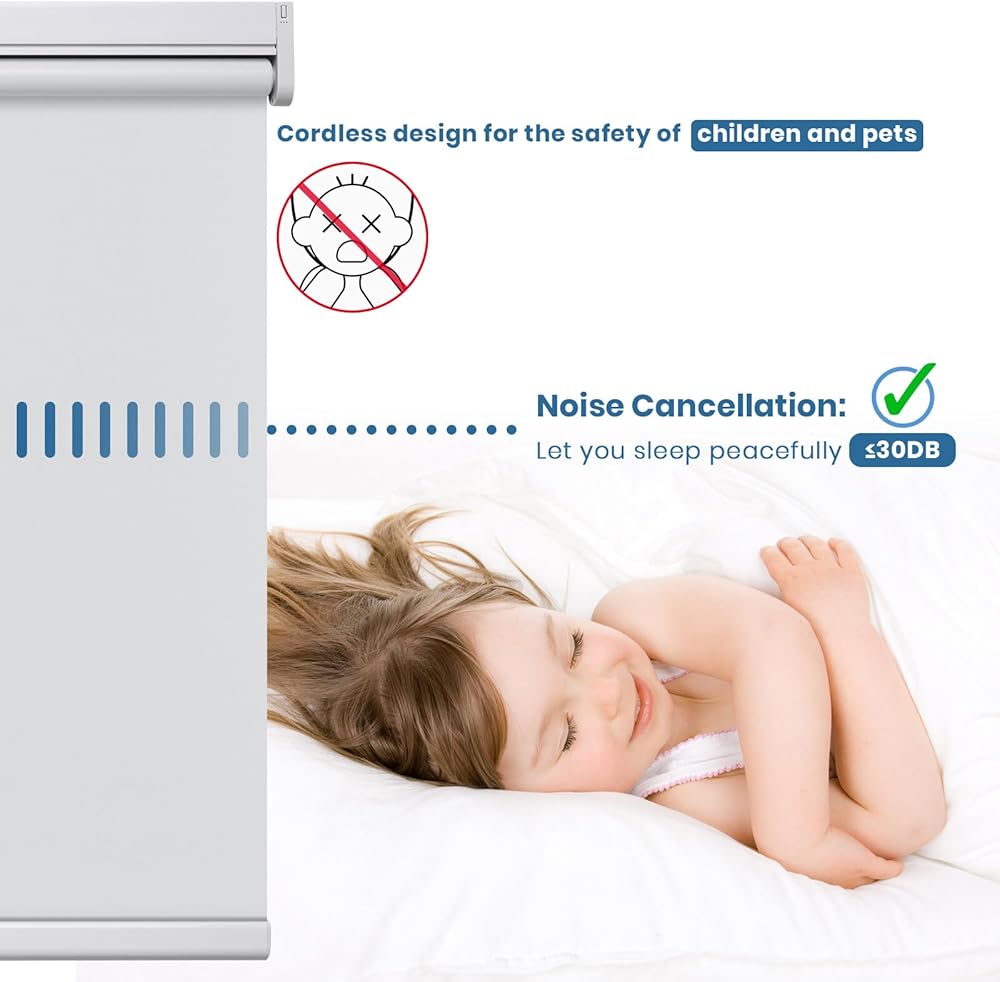 🍂【Safe for children & pets】 Unique cordless design is safer for your family, with no need to manually, A single channel remote not only frees your hands but also can lie down or sit to enjoy the beautiful scenery outside the window or the quiet indoor, just press or stop to control the length of the curtain by remote control, which is so simple and convenient.