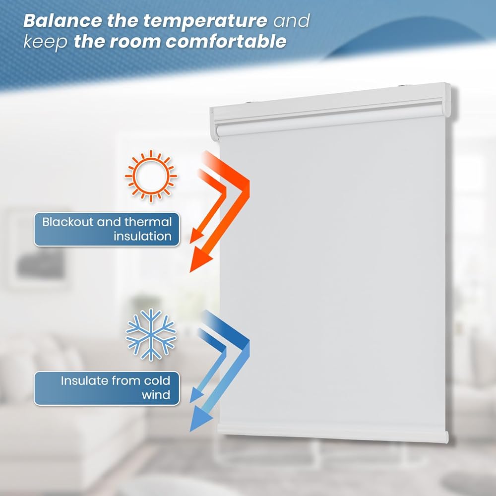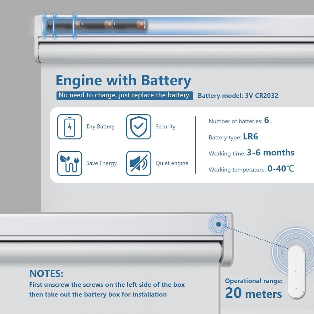 🍂【Motor system】Motorized Blind Shade Powered by 6 pre-installed dry batteries, no need to recharge, Makes your smart life more secure and reliable, batteries can be used for 3-6 months.
