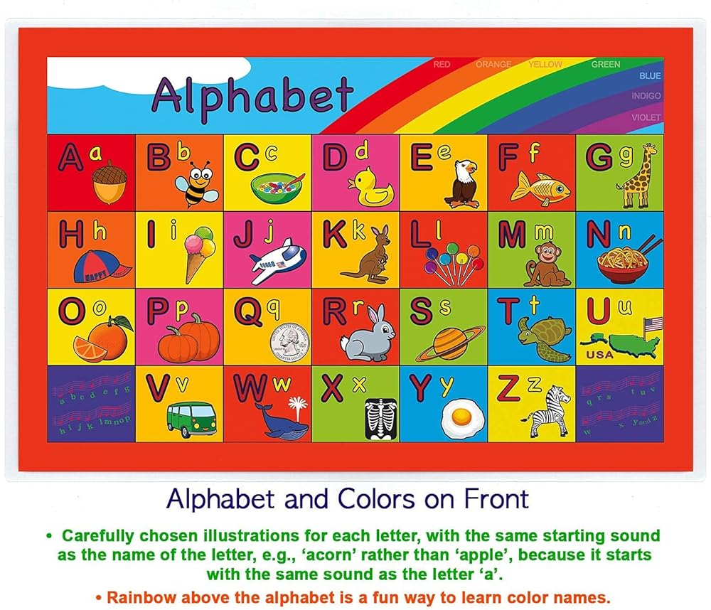 مفرش أطباق للأطفال من Natural Learning (مفرشان أطباق: خريطة العالم في مركز الولايات المتحدة الأمريكية/أوروبا؛ الحروف الأبجدية/الألوان والأرقام/الأشكال 4 في 1)