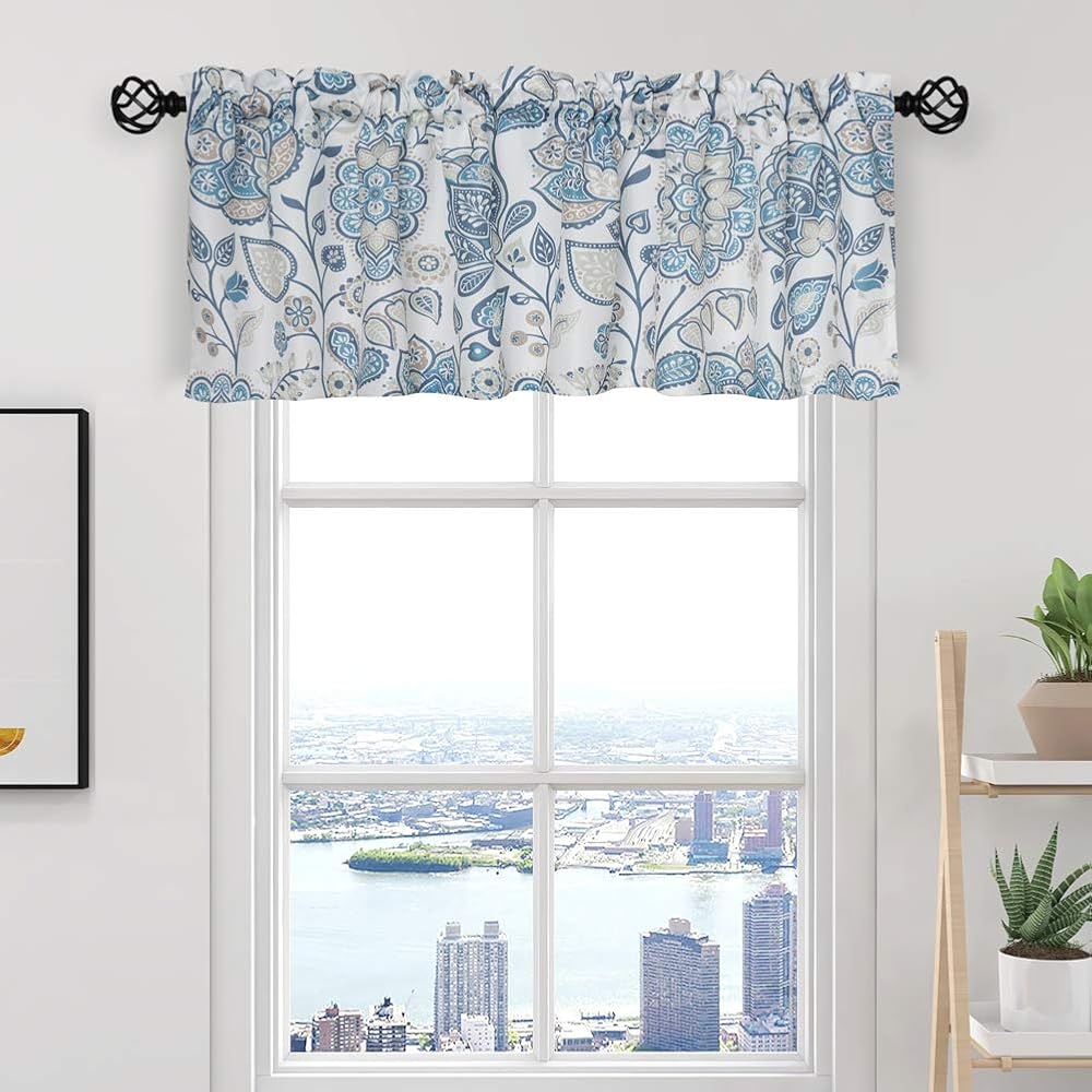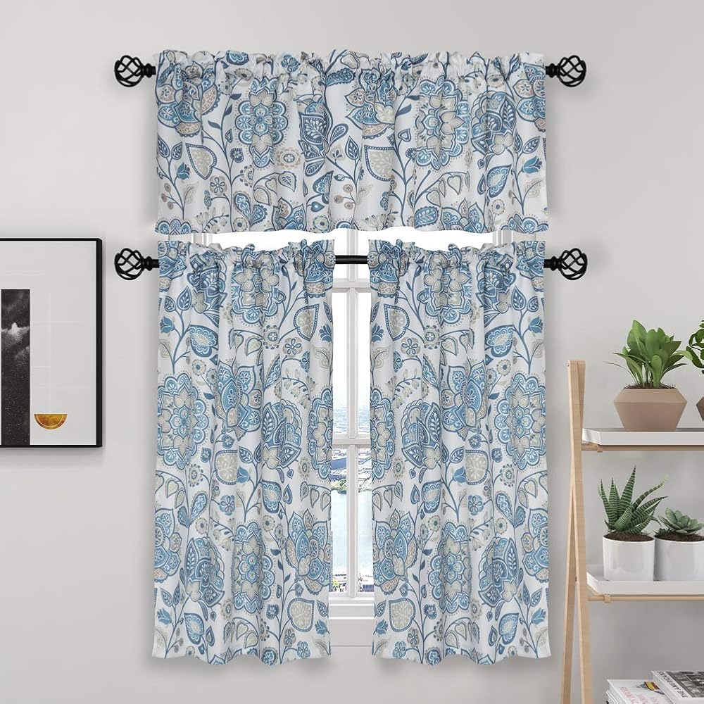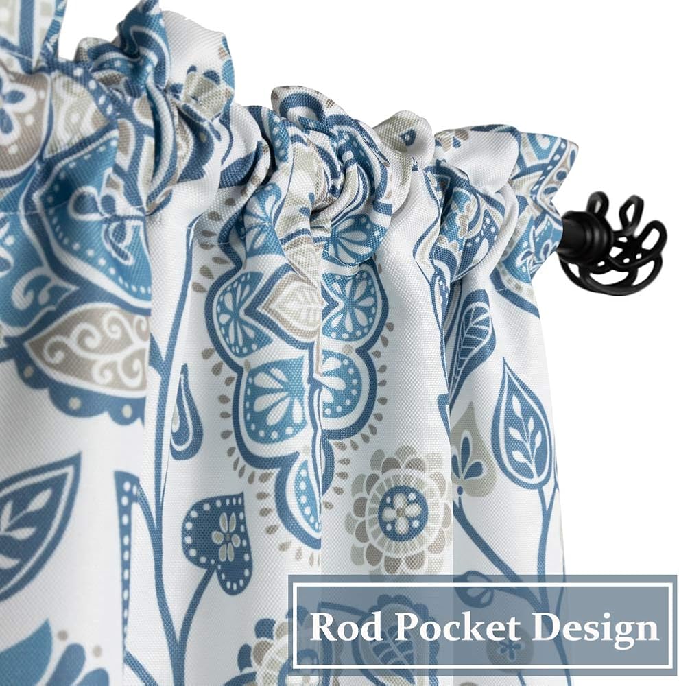 ستائر المطبخ 24 بوصة ستائر طبقة الأزهار مزرعة مقهى الستائر متعددة الألوان الأزهار المطبوعة ستائر النافذة الصغيرة لغرفة الغسيل الحمام، قضيب جيب 2 لوحات، الأزرق