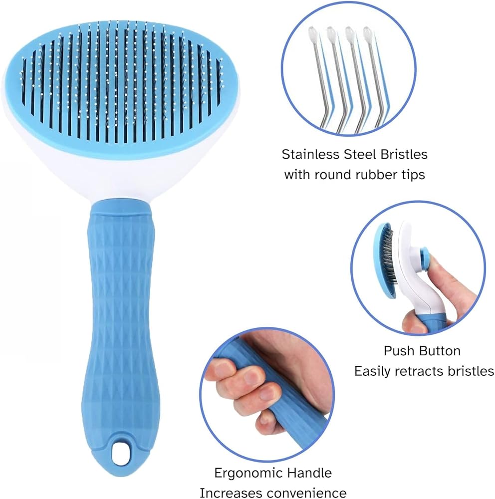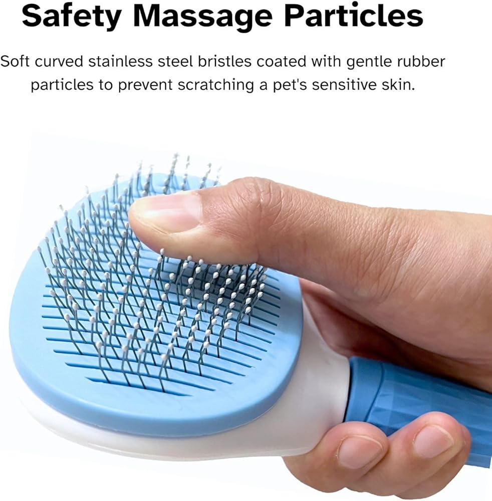 Skin-friendly Massage Needles: Features gentle, curved stainless steel bristles with rubber particles, offering a perfect solution for shedding and massaging pets without any risk of skin irritation, even for sensitive skin