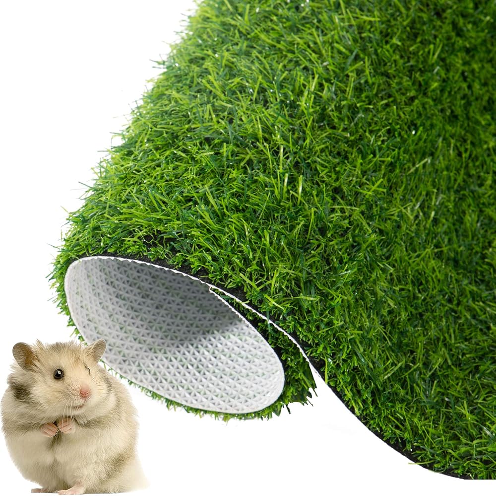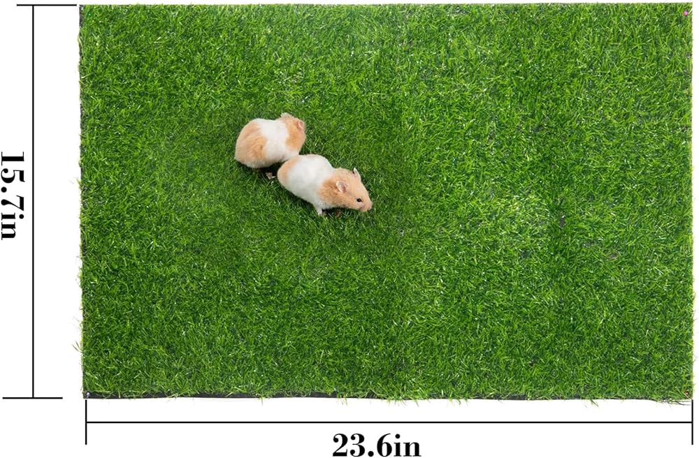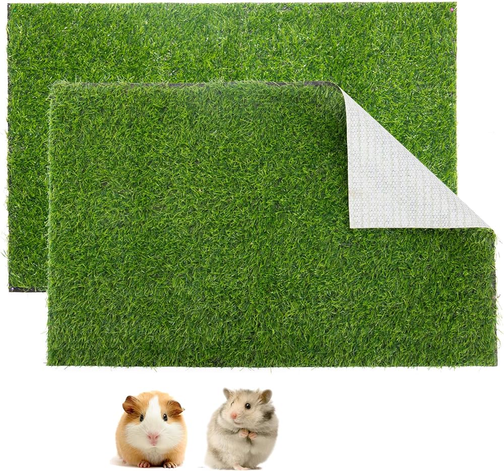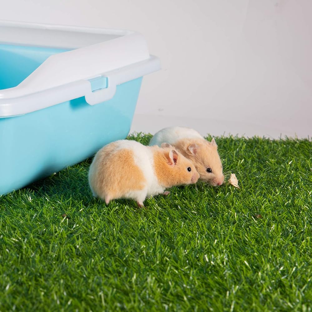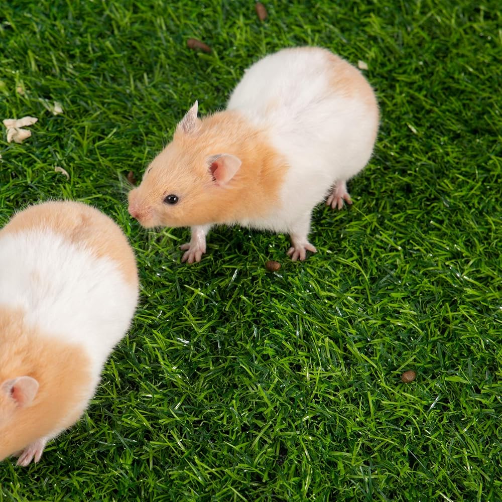The hamsters artificial replacement turf can be rinsed with a tap and can be reused after drying, the 2 artificial turf pads are easy to replace.