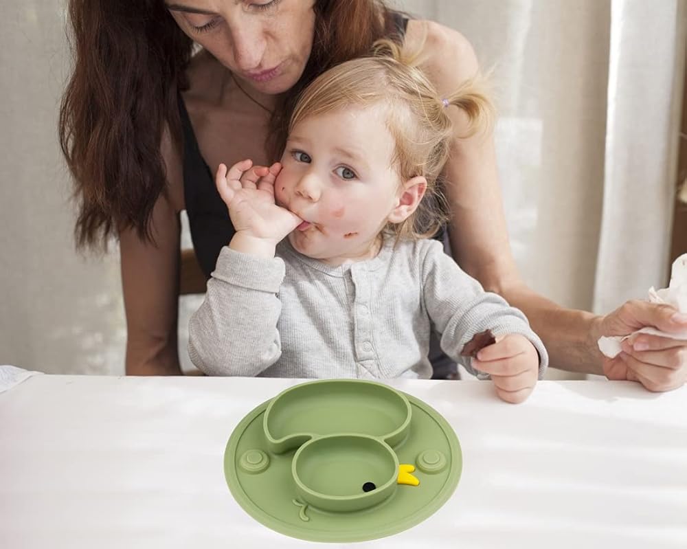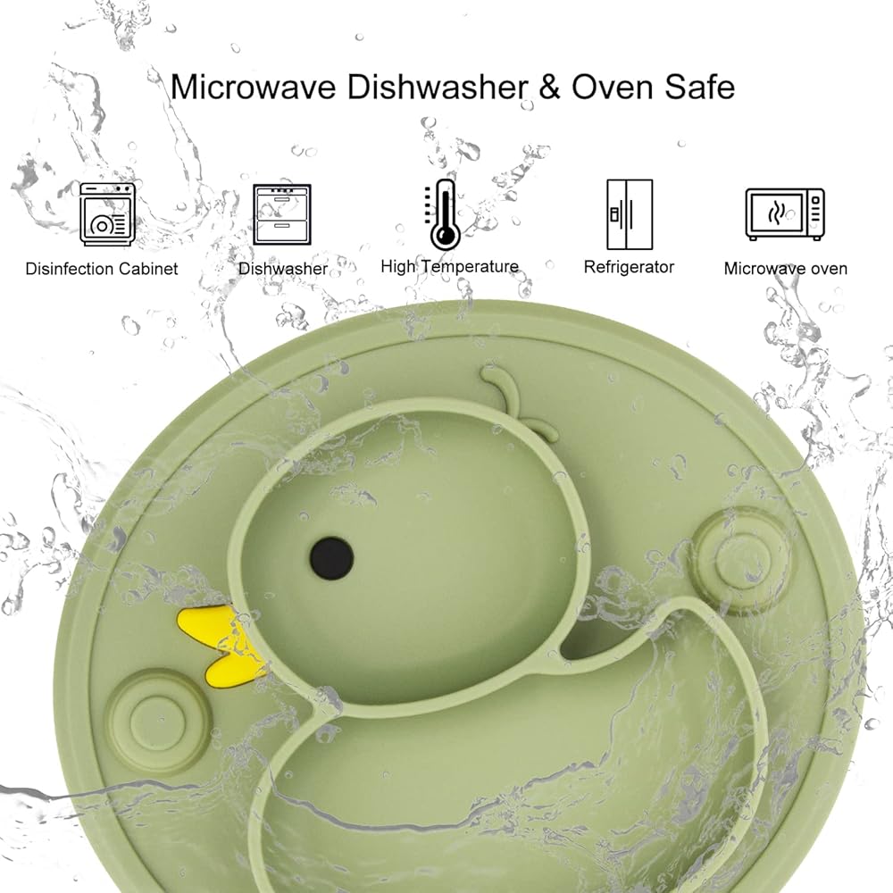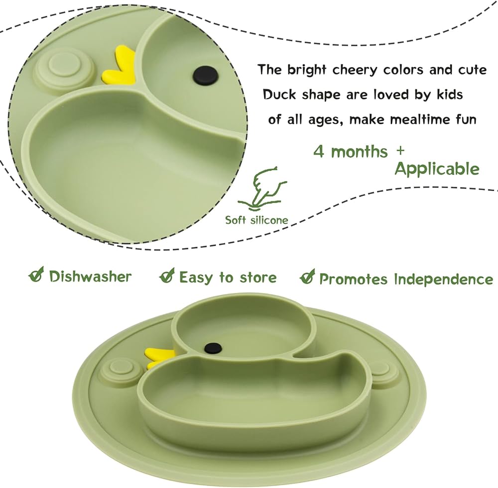 Qshare Toddler Plates, One-Piece Baby Plate for Toddlers and Kids, BPA-Free Strong Suction Plates for Toddlers, Dishwasher and Microwave Safe