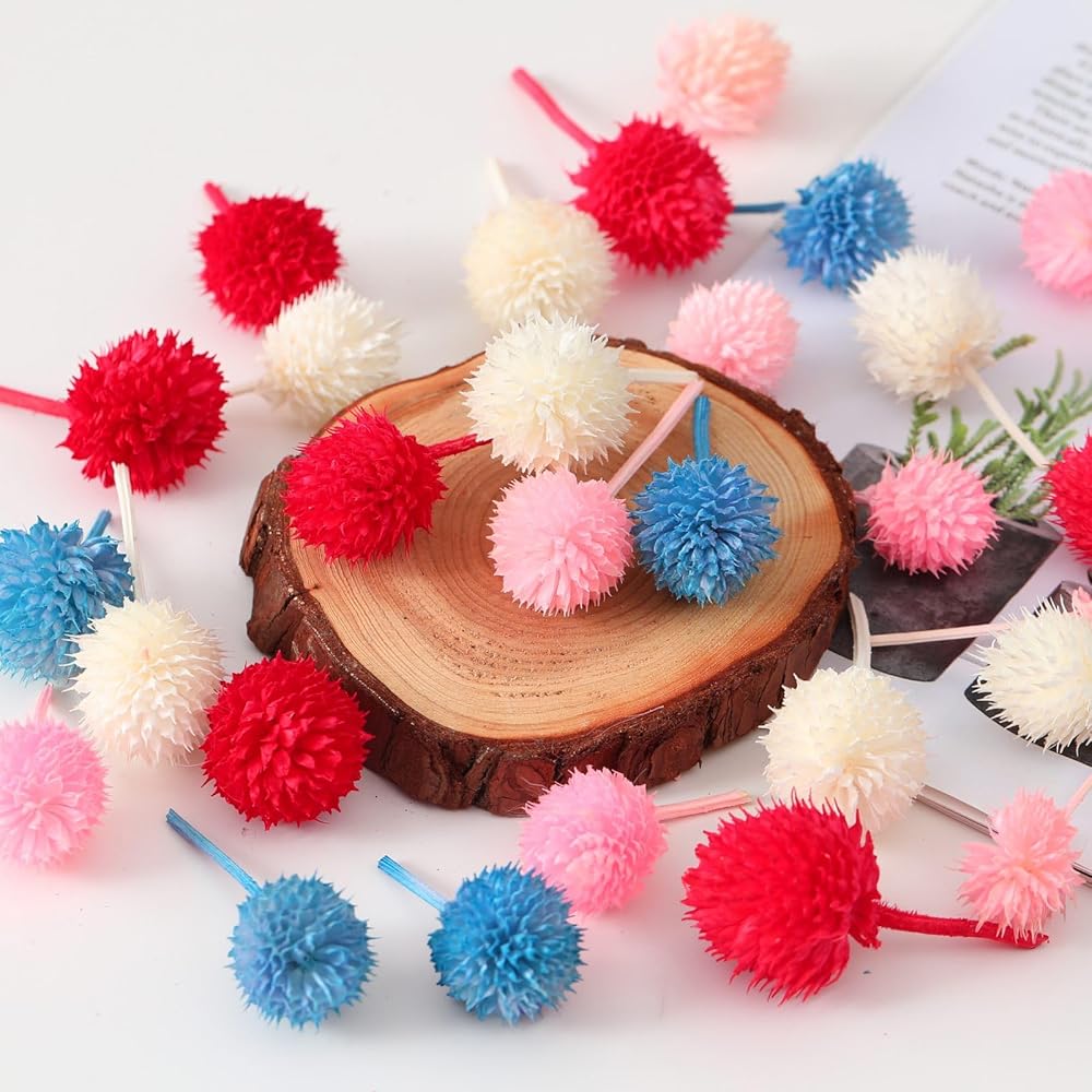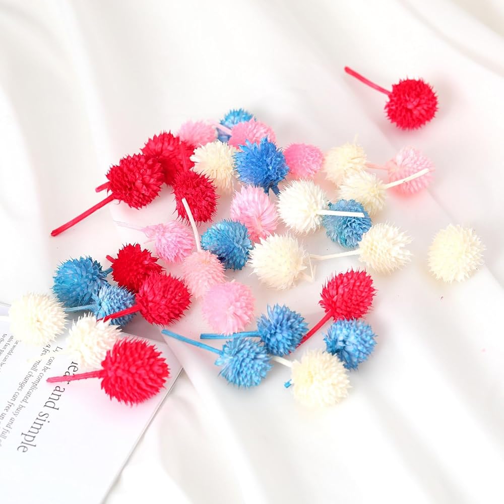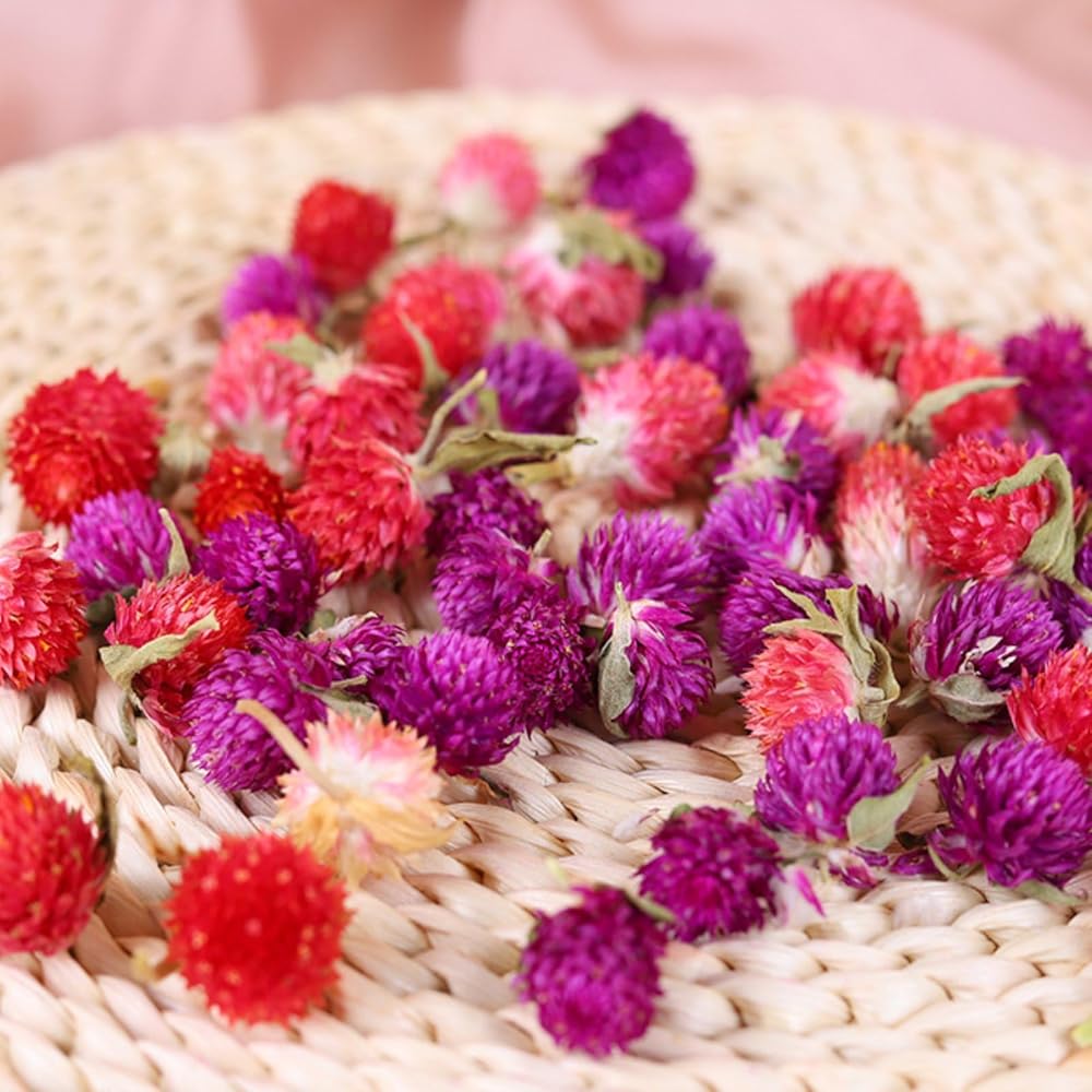 رؤوس الزهور الحقيقية المجففة: يتم حصاد زهورك المجففة الطبيعية من المزارع الطبيعية. كل زهرة مصنوعة يدوياً من مزيج من ثمار الفراولة الطبيعية. تحتوي كل عبوة على 70 إلى 80 قطعة من رؤوس الزهور الملونة، ويبلغ عرض كل زهرة حوالي 0.5 إلى 1 بوصة. بالمقارنة مع الزهور الاصطناعية، فهي مشذبة يدويًا بالحب والعناية، كل قطعة فريدة من نوعها