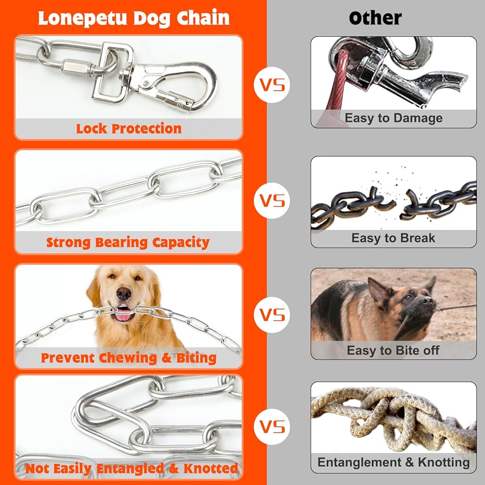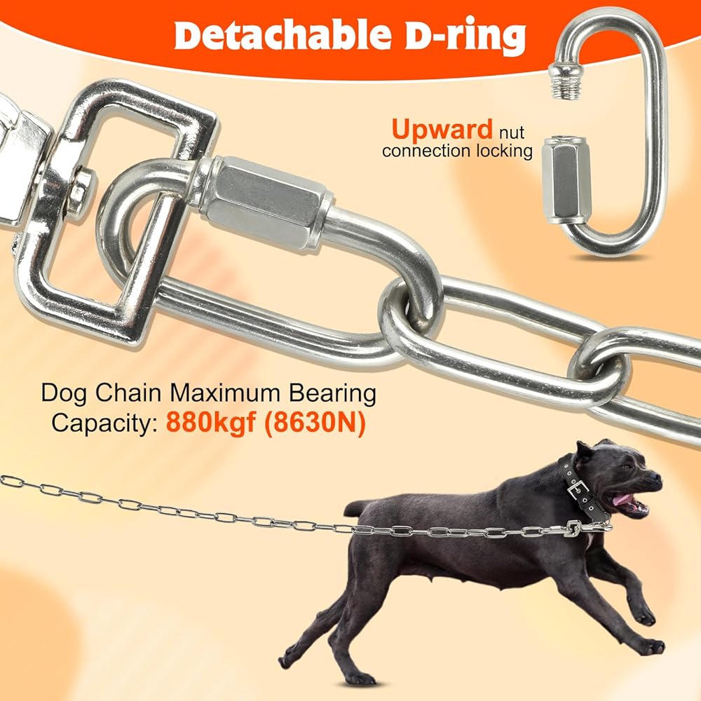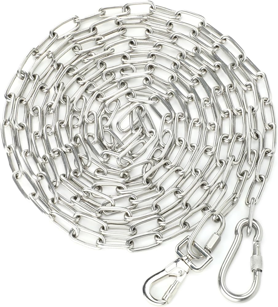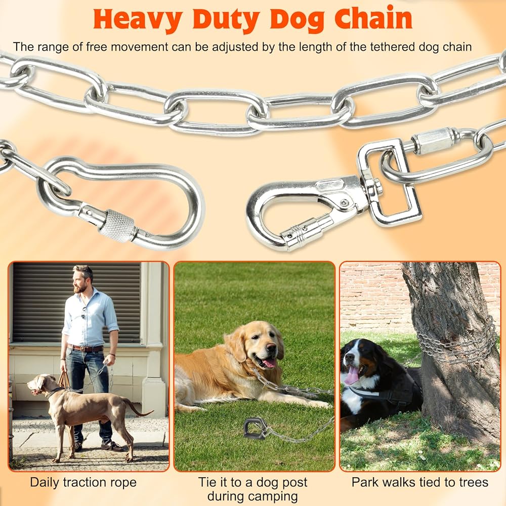 سهل التخزين والاستخدام: عند استخدام سلاسل الكلاب للخدمة الشاقة في الفناء، يجب توصيل الإبزيم فقط، وليس هناك حاجة لربط عقدة متحركة. عند التخزين، يمكن عجنها على شكل كرة وتخزينها دون القلق بشأن ربط الحبل أثناء الاستخدام.