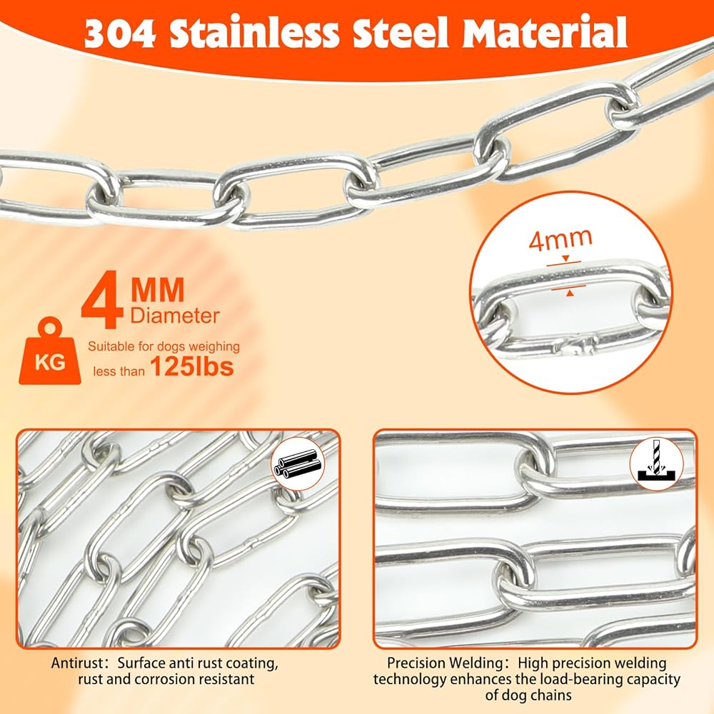 قوة الشد الدببة 6864N: الحلقة الحديدية لسلسلة الكلاب المصنوعة من الفولاذ المقاوم للصدأ بسمك 3 مم تستخدم تقنية اللحام السلس، وهي متصلة بقوة ويمكنها تحمل قوة شد قصوى تبلغ 700 كجم (6864N)، مناسبة للكلاب التي تزن أقل من 85 كجم.
