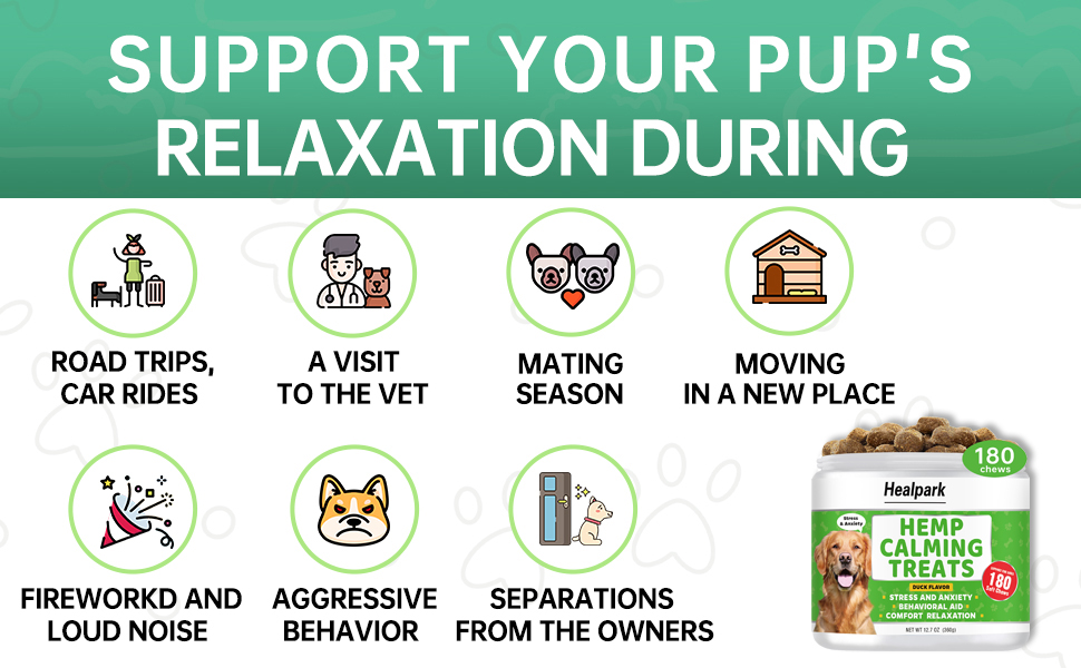 ساعد في تعزيز الهدوء - علاجات مهدئة للكلاب تحتوي على جذر حشيشة الهر وزيت القنب تدعم استرخاء الجرو الخاص بك أثناء المواقف المثيرة للقلق مثل العواصف أو الألعاب النارية أو الانفصال. إنها تساعد حيوانك الأليف على البقاء هادئًا وودودًا. مثالي أيضًا ليكون في متناول اليد للسلوك المفرط الظرفي مثل تقليم الأظافر أو زيارات العناية أو مقابلة أشخاص جدد أو التواجد في بيئة جديدة.
