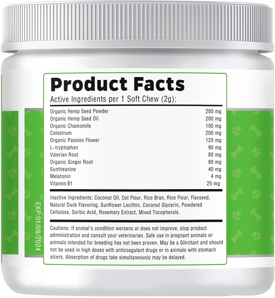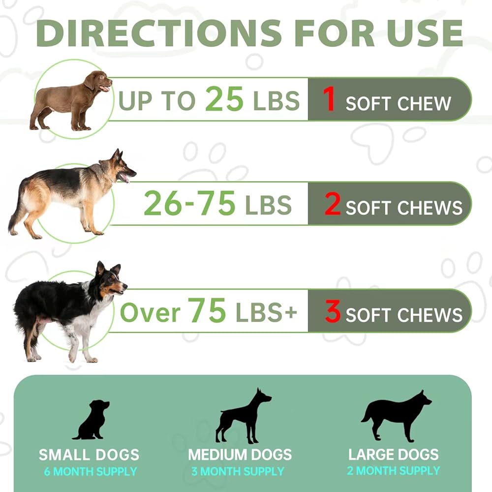 القيمة مقابل المال - امنح هذه الكلاب مكافآت مهدئة قبل 30 دقيقة تقريبًا من بدء الموقف المجهد. الجرعة الموصى بها: جرعة صغيرة (6 أشهر)، للكلاب المتوسطة (3 أشهر)، للكلاب الكبيرة (2-موس). تتميز المضغ بسهولة المضغ، وهي مفيدة بشكل خاص للحيوانات الأليفة كبيرة السن، وهي تحتوي على الدجاج والجزر والبطاطا الحلوة وزيت القنب للحصول على مذاق تحبه معظم الكلاب!
