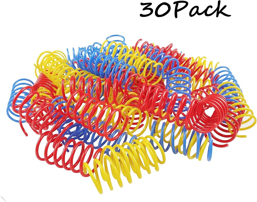 حلزونات زاهية وملونة - تأتي كل مجموعة مع 30 لعبة زنبركية للقطط بما في ذلك 10 لفائف زرقاء و10 صفراء و10 ملفات حمراء. مثالية للعديد من القطط أو حتى القطط الواحدة.