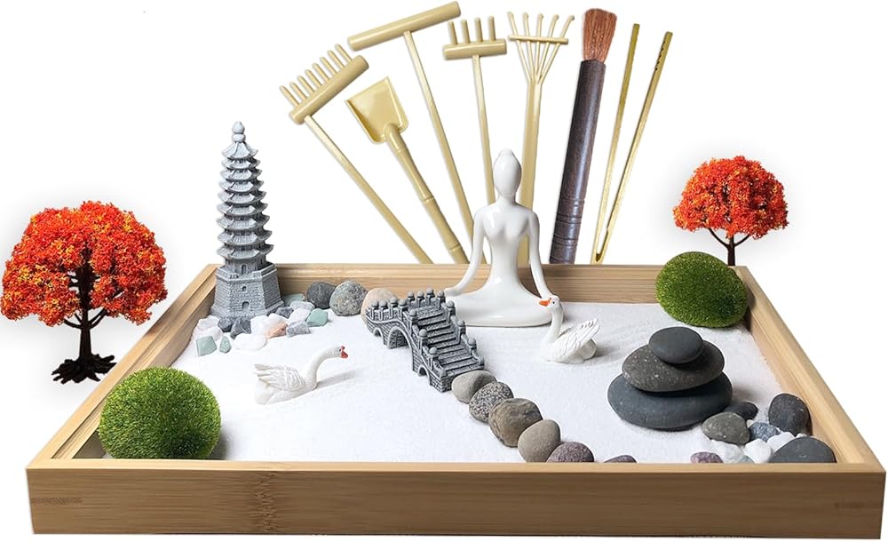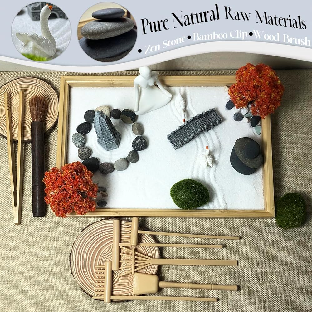 يمكن أن تساعدك حديقة Zen الصغيرة هذه على تحرير نفسك. إذا كنت تشعر بالانفعال أو الإحباط بسبب العمل أو الحياة، فيمكنك تجربة هذه الحديقة الصغيرة التي تساعدك على استرخاء جسمك وعقلك. يمكن أن يكون منزلك الروحي، مما يساعدك على التعمق في عالمك الداخلي وتخفيف التوتر.