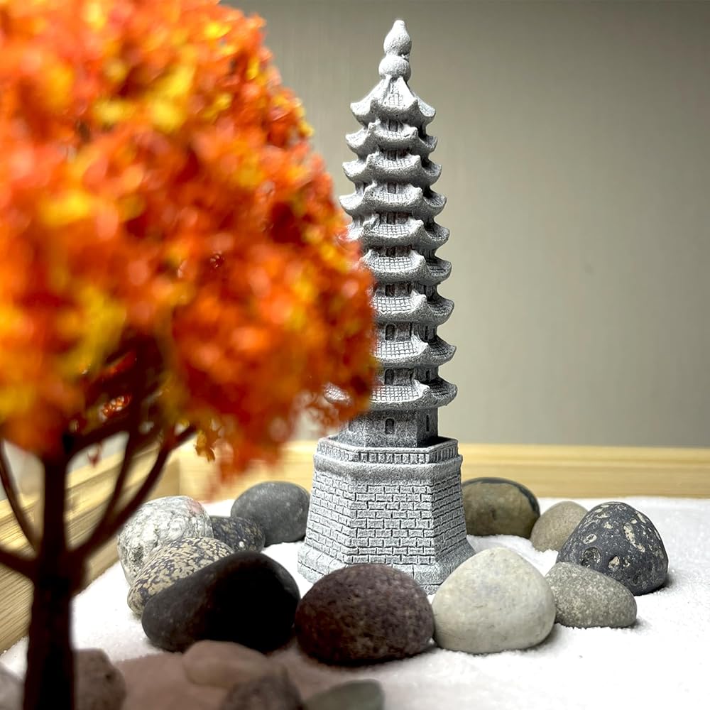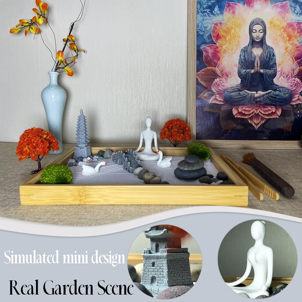 مجموعة أدوات حديقة زن DIY لتزيين مكتب المكتب، مجموعة صندوق رمل صغير للتأمل، هدية للزوجة والأم والصديقة والجدة - تشمل شجرة صناعية وبوذا والمعبد والحجر.. (حديقة زن السجل)