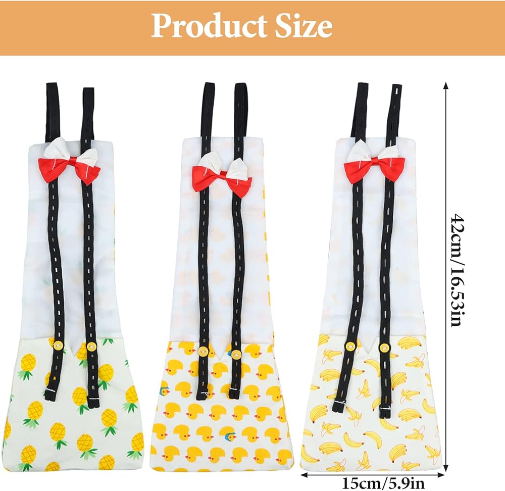 محتويات العبوة: سوف تحصل على 3 قطع من حفاضات الدجاج اللطيفة للحيوانات الأليفة، الأنماط عليها عبارة عن بطة صفراء صغيرة وموز وأناناس، وتتوفر 3 قطع للاستخدام اليومي الأساسي لحيوانك الأليف.