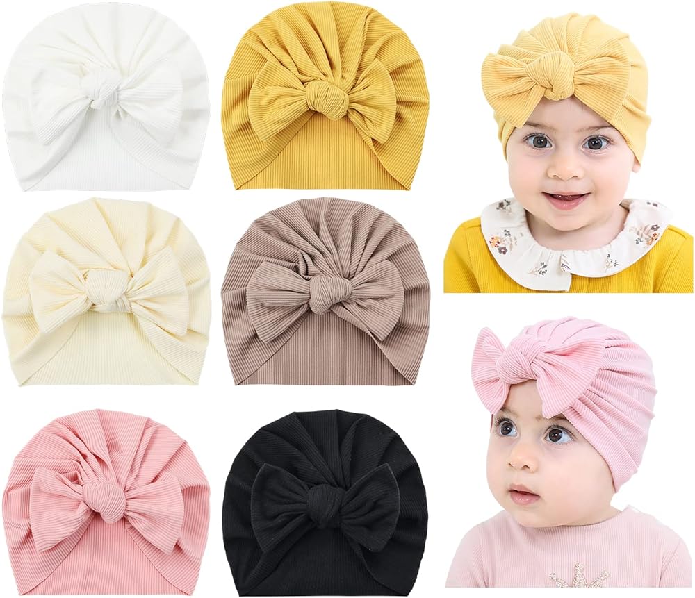 【مادة عالية الجودة】--قبعات عمامة للبنات الصغيرات مصنوعة يدويًا من مزيج قطني عالي الجودة. قابلة للتمدد للغاية وناعمة ومريحة للطفل الرقيق. مرنة بما فيه الكفاية للتكيف مع محيط رأس الأطفال من حديثي الولادة إلى الأطفال الصغار.
