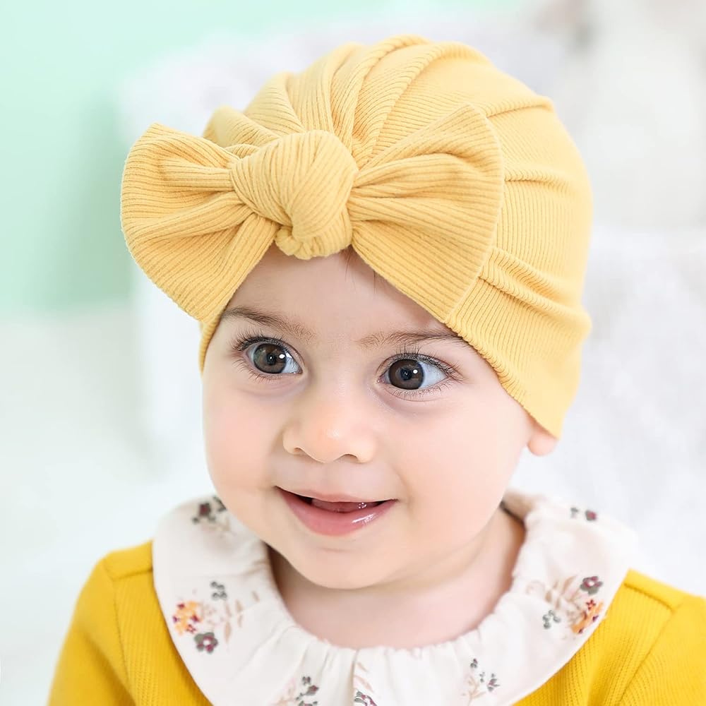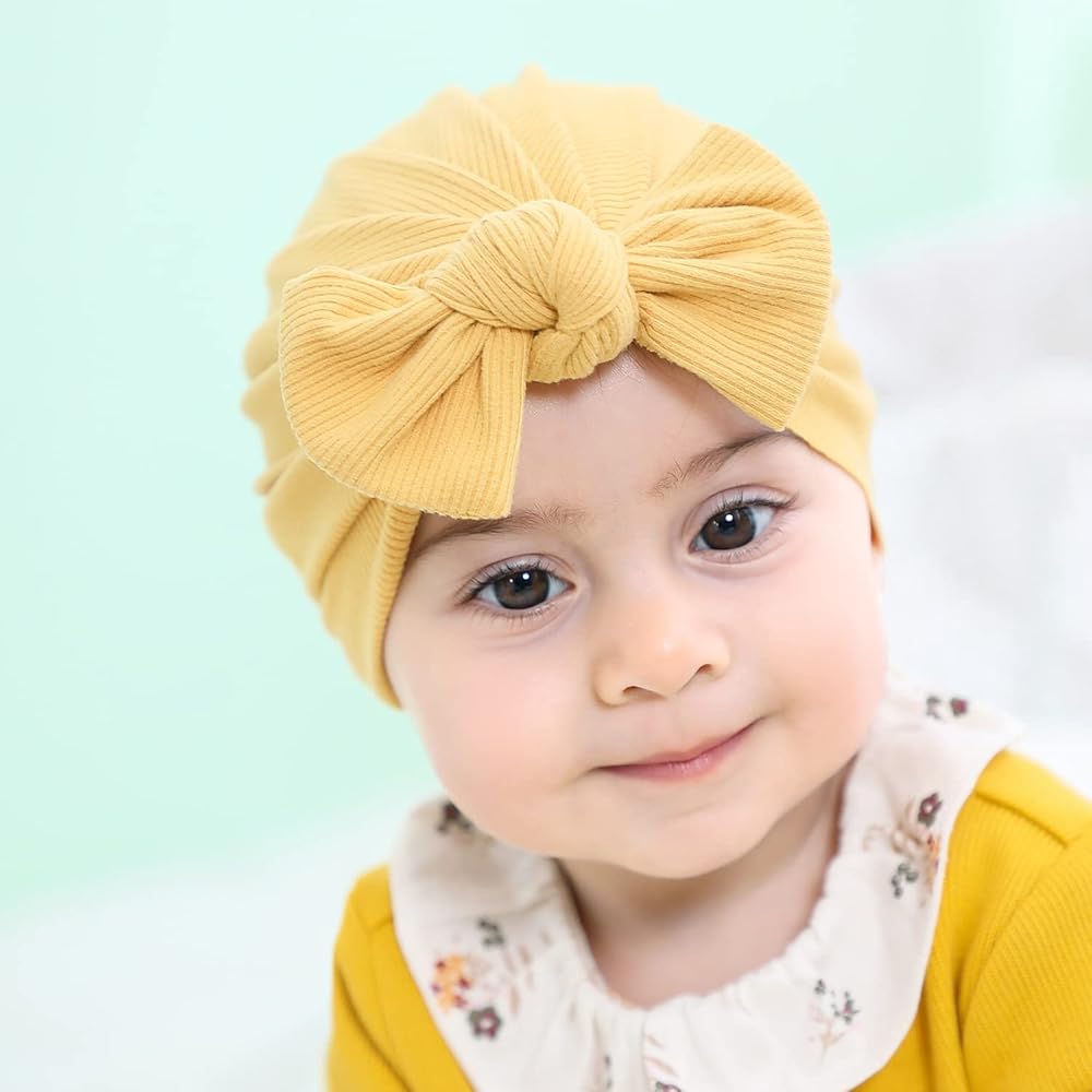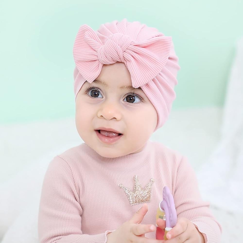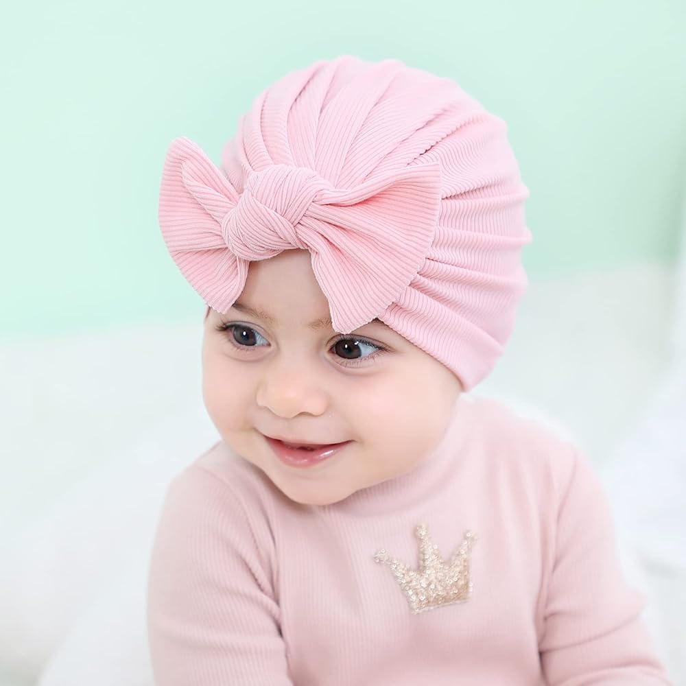 【تصميم فيونكة】--جميع القبعات مصنوعة يدويًا في بيئة نظيفة خالية من الحيوانات الأليفة وخالية من الدخان. تصميم أنيق وجميل على شكل فيونكة كبيرة. ستجعل قبعات العمامة هذه أميرتك الصغيرة أكثر روعة وحيوية.