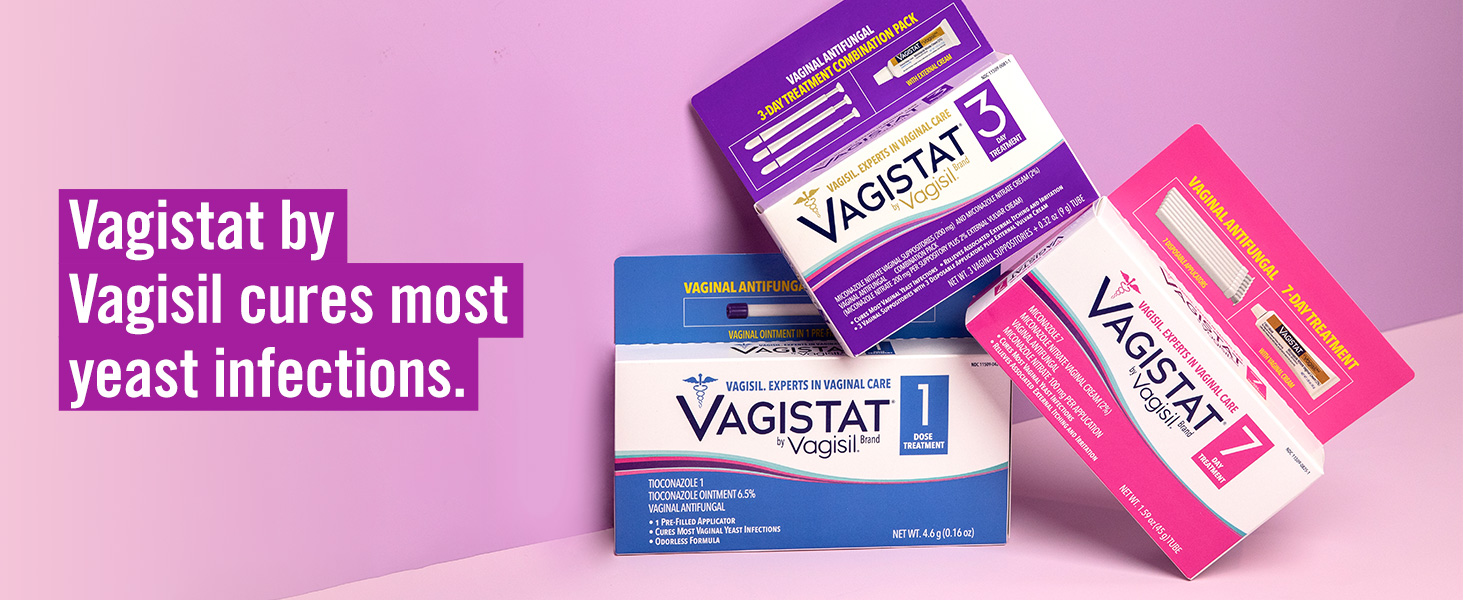 Vagistat-1 is a convenient and efficacious vaginal antifungal treatment that gets to work in a single dose. So, if you've been diagnosed with a yeast infection, or you've been diagnosed with one previously, Vagistat-1 is a convenient option. By Vagisil the #1 Itch creme experts based on sales (IRI) anti-itch creme category trailing 52 weeks 6/27/22