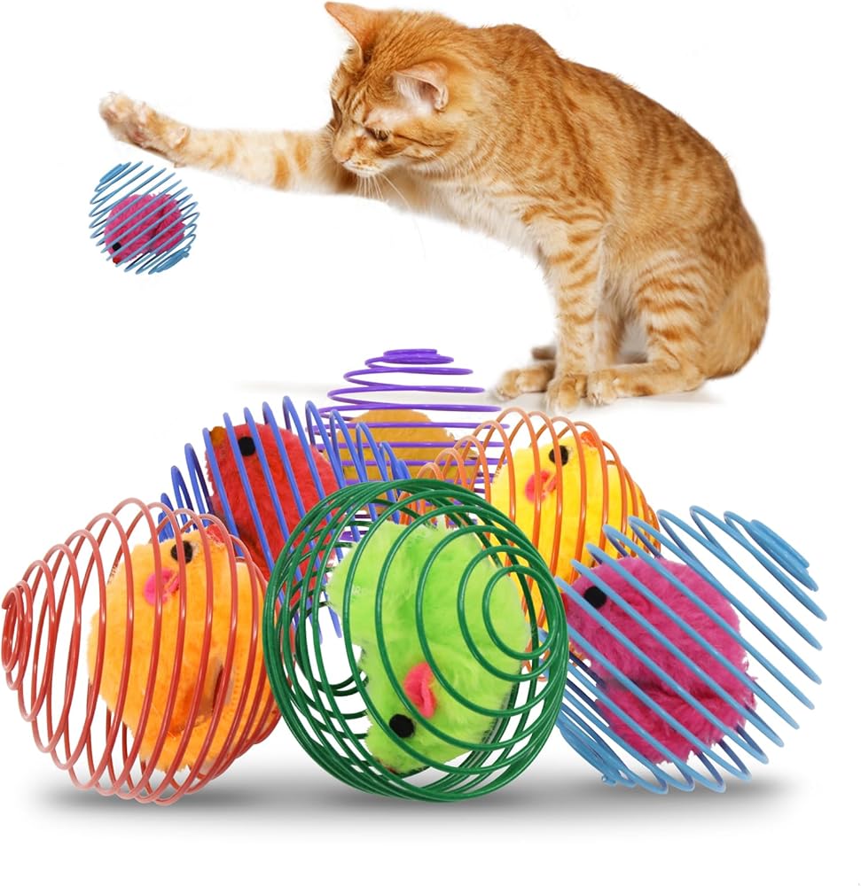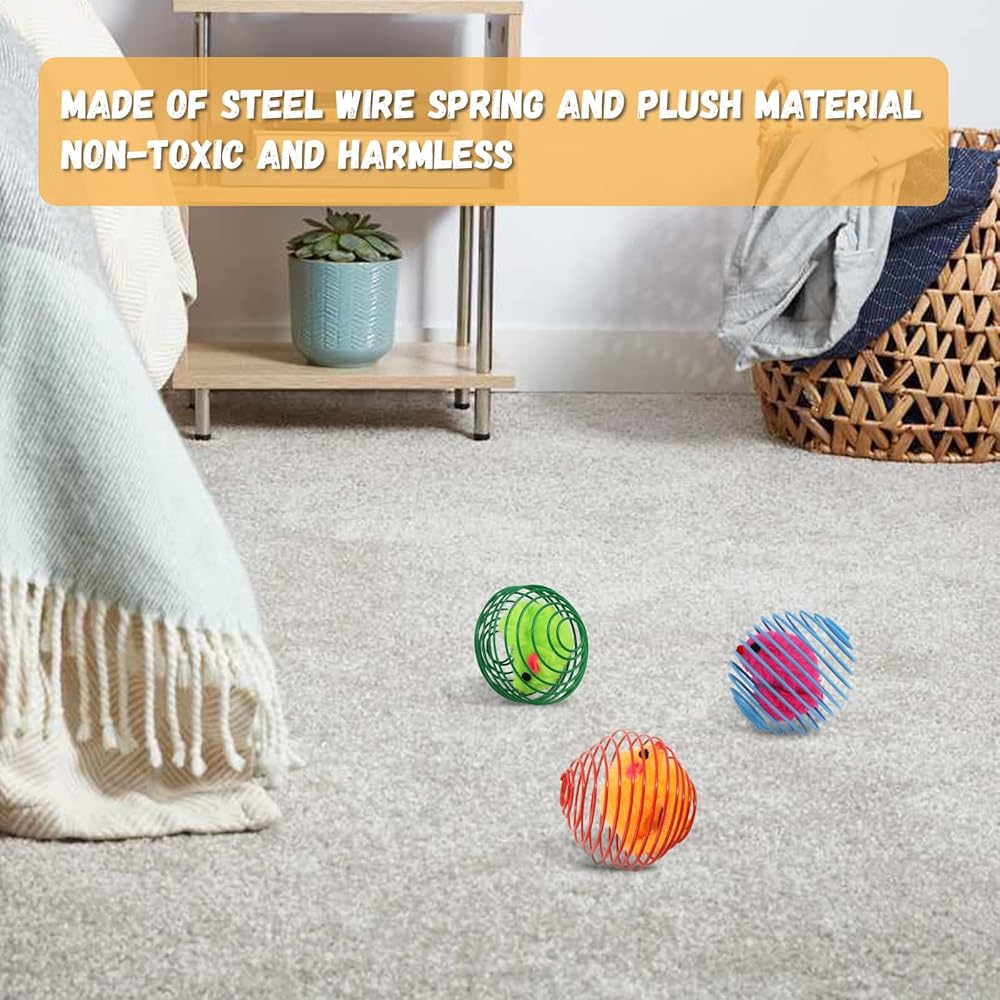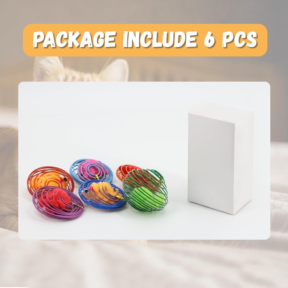 Package includes: You will receive 6 pieces of retractable cat spring toys in random colors, each with a colorful mouse inside, enough for your cat to play with!