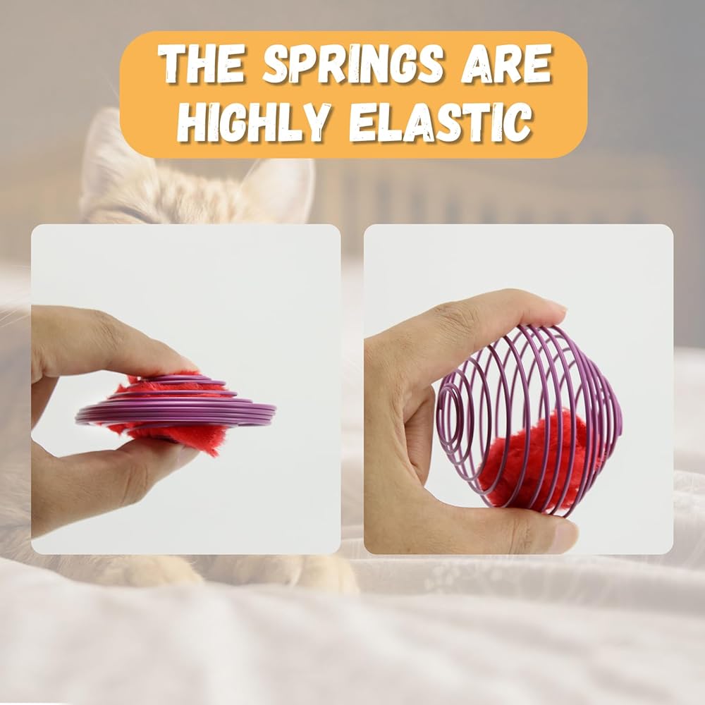 Safe Materials And Construction:This cat spring ball is made of steel wire spring and plush material, non-toxic and harmless, sturdy and durable to ensure the safety, don't worry about your cat licking or biting