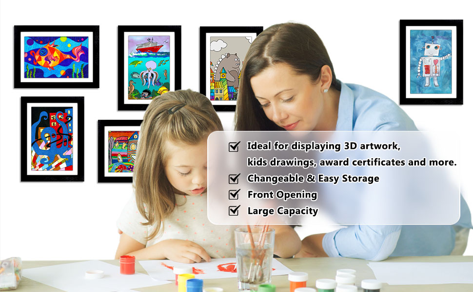 [تطبيق واسع] يعد الإطار الفني للأطفال هذا طريقة رائعة لعرض الأعمال الفنية ثلاثية الأبعاد والصور والبطاقات البريدية والمقتنيات ومجموعة متنوعة من العناصر الأخرى. سواء تم وضعها أو تعليقها في غرفة الأطفال، أو غرفة المعيشة، أو غرفة الطعام، أو غرفة المعيشة، فإن إطارات الصور الفنية للأطفال لدينا سوف تمتزج بشكل مثالي مع أي ديكور.