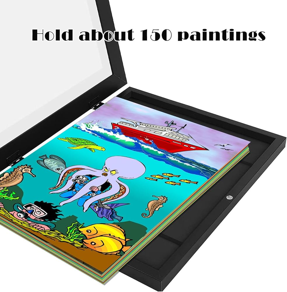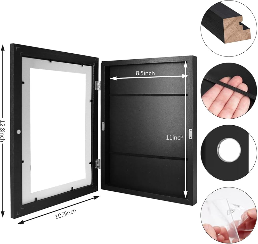 [سعة كبيرة] يبلغ سُمكها 0.7 بوصة مع حدود داخلية مقاس 8.5*11 بوصة، إطارات الأعمال الفنية الخاصة بنا لفن الأطفال مثالية لعرض الأعمال الفنية مقاس A4 أو أصغر وعادةً ما تحمل 50-150 ورقة من الورق، ولكن هذا يعتمد على سمك والمادة الورقة. تحتوي الإطارات الفنية لفن الأطفال على شريطين مطاطيين أسودين لتثبيت العمل الفني في مكانه دون إتلافه.