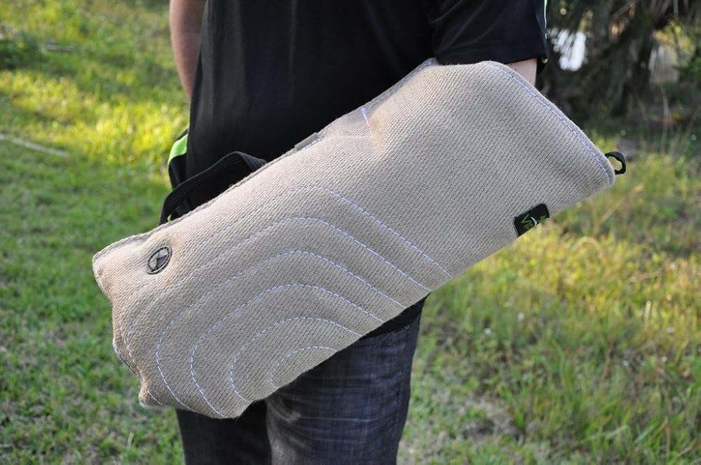Viper's Jute and Synthetic Linen Level 1 Bite Sleeves are great for entry level dog training. The sleeve covers the trainer's entire forearm and included an internal soft-grip handle as well as an external handle. Can be used on both right and left arm. Made of high quality and top grade materials such as jute and synthetic linen that are tear-resistant and durable.