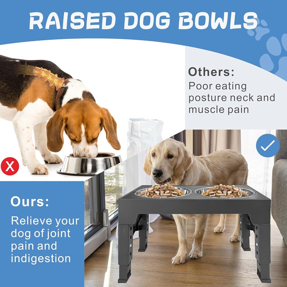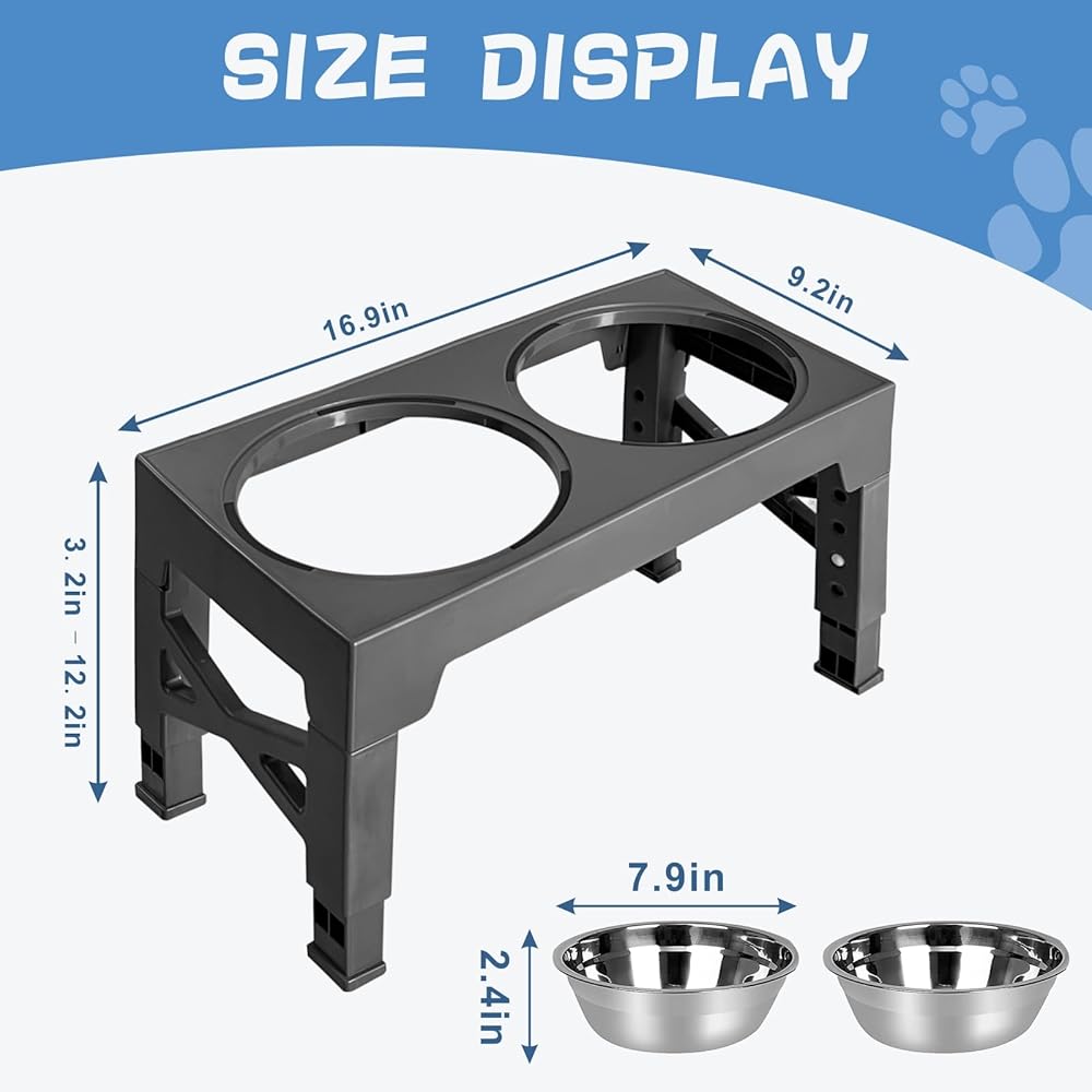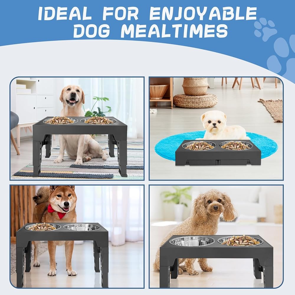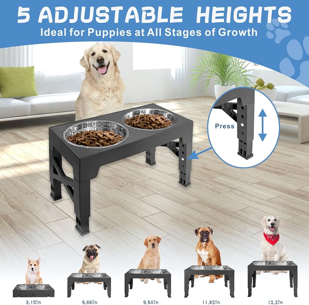 Adjustable Heights for Customized Comfort: With five adjustable heights ranging from 3.15 to 12.2 inches, you can find the perfect feeding position for your furry friend. No more stooping or straining to reach their food or water!