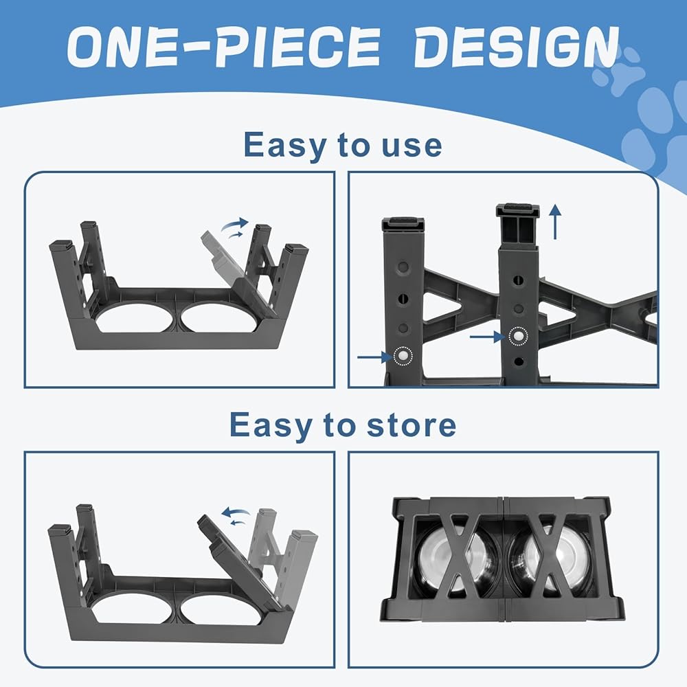 Conveniently Foldable for Storage: Our pet feeding station is easy to set up and take down, and the legs fold effortlessly for storage or transport. You and your furry friend can enjoy convenient and comfortable feeding anywhere, anytime.