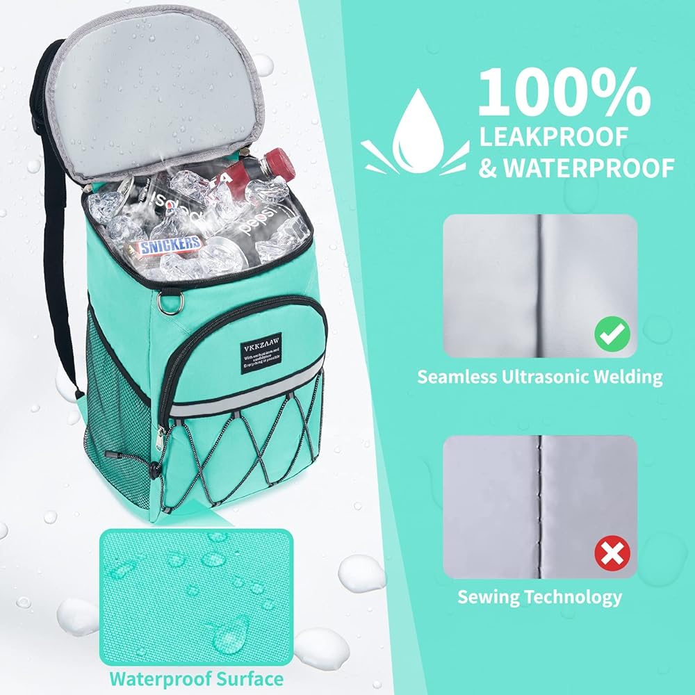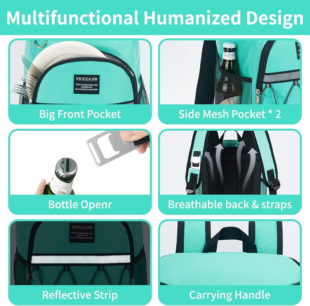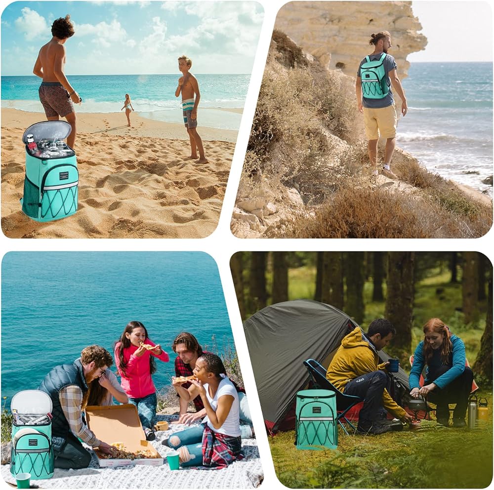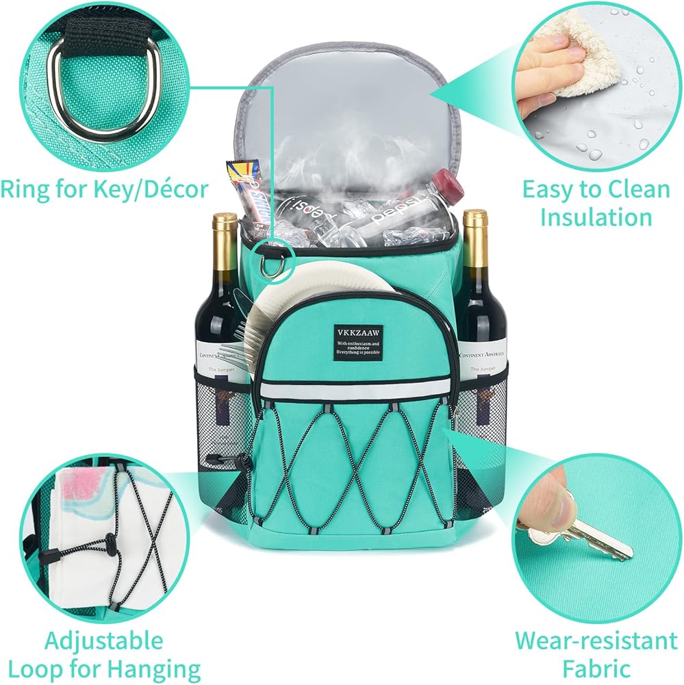 حقيبة ظهر خفيفة الوزن ولطيفة للغداء: تزن حقيبة الظهر المبردة 1.2 كجم فقط، ويمكن للحجرة الرئيسية العميقة استيعاب 26 علبة، كافية للوجبات والبيرة والوجبات الخفيفة وحتى المشروبات الكبيرة. حقيبة الظهر الرائعة المعزولة المثالية للرحلات اليومية والتخييم والمشي لمسافات طويلة والنزهات والشواطئ.