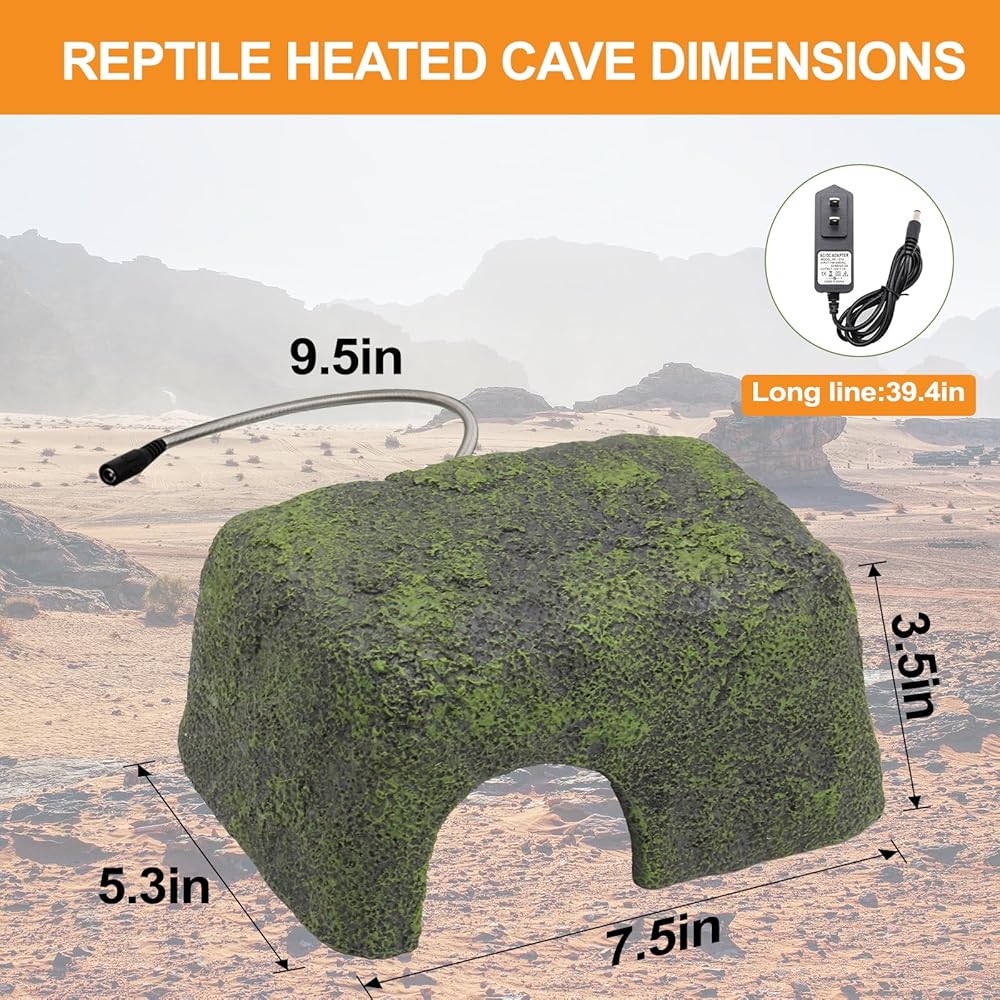 مخبأ بمساحة كبيرة - حجم كهف إخفاء تسخين الزواحف: 7.5 × 5.3 × 3.5 بوصة؛ حجم الكهف الداخلي: 6.7 × 4.7 × 3.1 بوصة. الجزء الداخلي من الكهف كبير بما يكفي لتوفير مكان اختباء مريح للزواحف. سلك طويل بطول 1 متر يكفي لوضع الكهف المخفي الساخن في أي ركن من أركان الحوض.