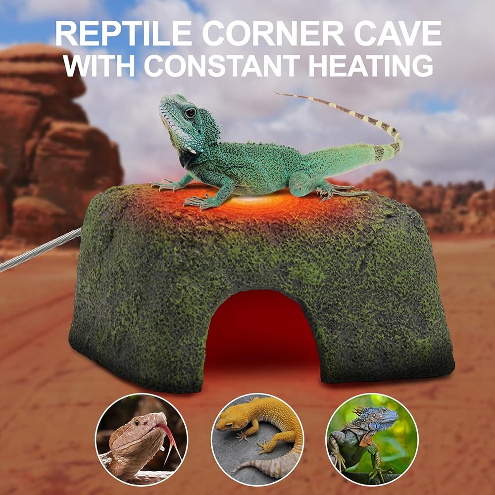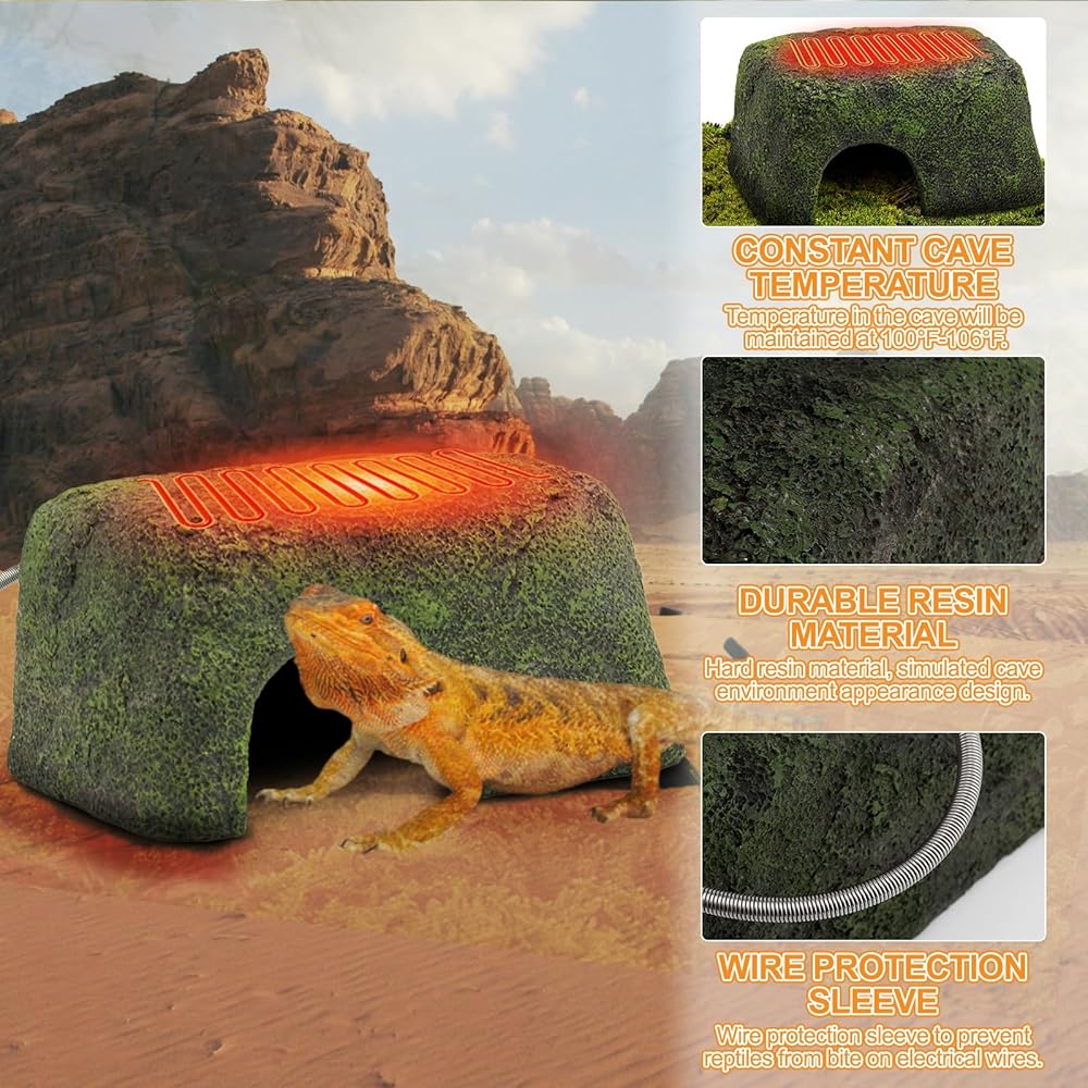 مادة الراتنج بدون رائحة - كهف إخفاء الزواحف مصنوع من مادة الراتنج الآمنة، قوي ومتين وسهل التنظيف. سيتم أيضًا تسخين المنصة العلوية وتصبح دافئة، مما يجعلها رائعة للاستمتاع أو الراحة.