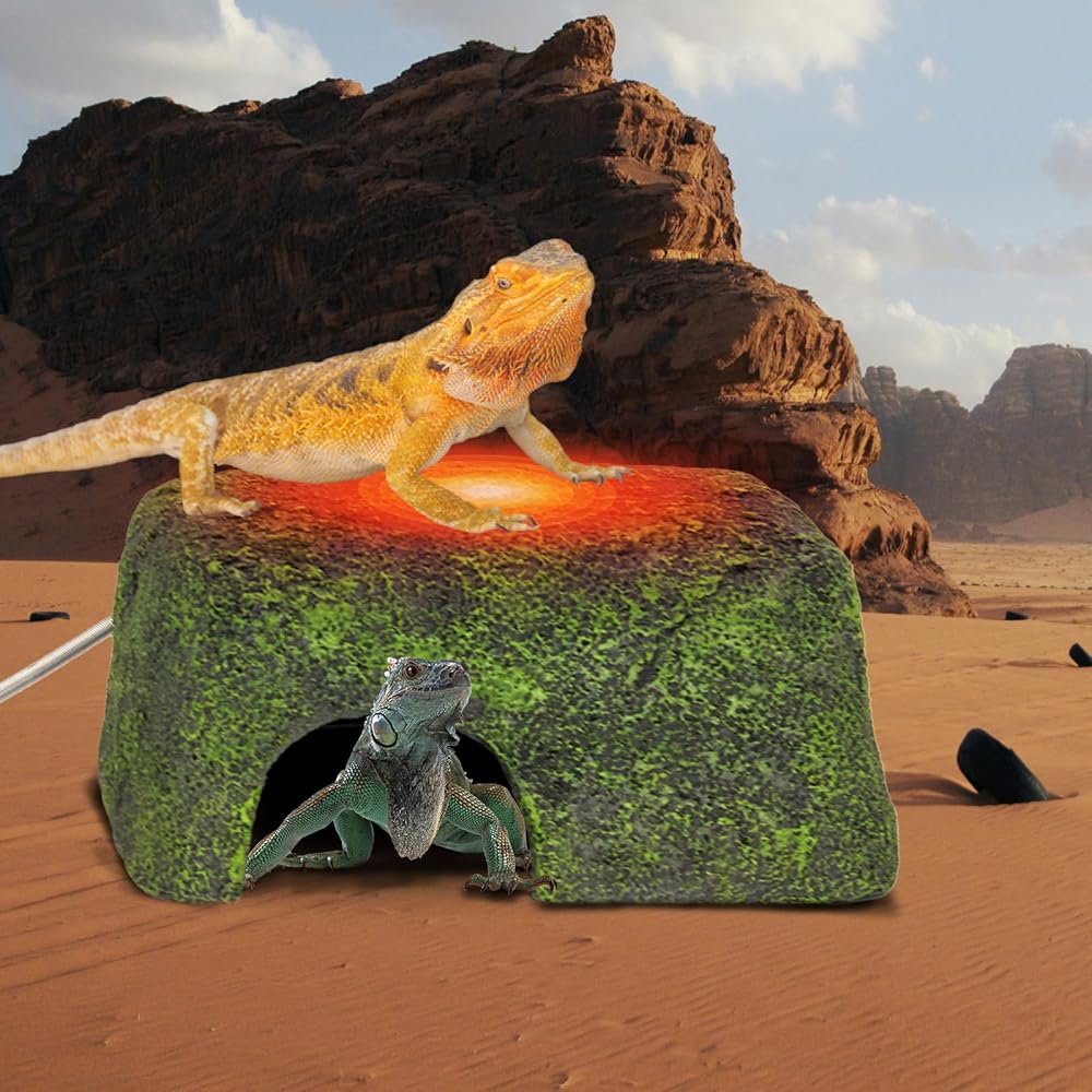 استخدامات متعددة - مخبأ الزواحف الساخن هذا ليس فقط مزخرفًا ورائعًا للتسلق والاستمتاع في الشمس، ولكنه يوفر أيضًا مخبأ آمنًا للبرمائيات الخاصة بك. سواء أكان الأمر عبارة عن منصة تشمس في الأعلى أو تسخين مستمر داخل كهف مخفي، يمكن أن تشعر زواحفك بالدفء والراحة.