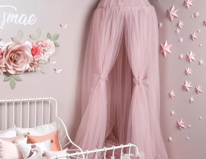 مظلة سرير أطفال حديثة لحضانة الأطفال - زاوية قراءة لسرير الأطفال الرضع - شبكة قراءة بشبكة البعوض - سرير قلعة الأميرة هاوس، مظلة شفافة معلقة 10 طبقات (وردي)