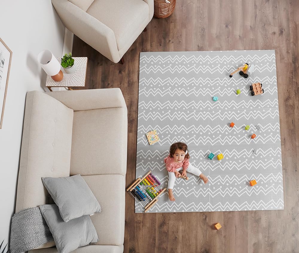 EXTRA LARGE: perfect for large or small spaces this mat can be adjusted to covers spaces up to 77-inches wide and 71-inches long. Made of highly durable and soft foam for the safety of your little one