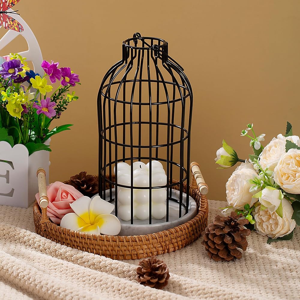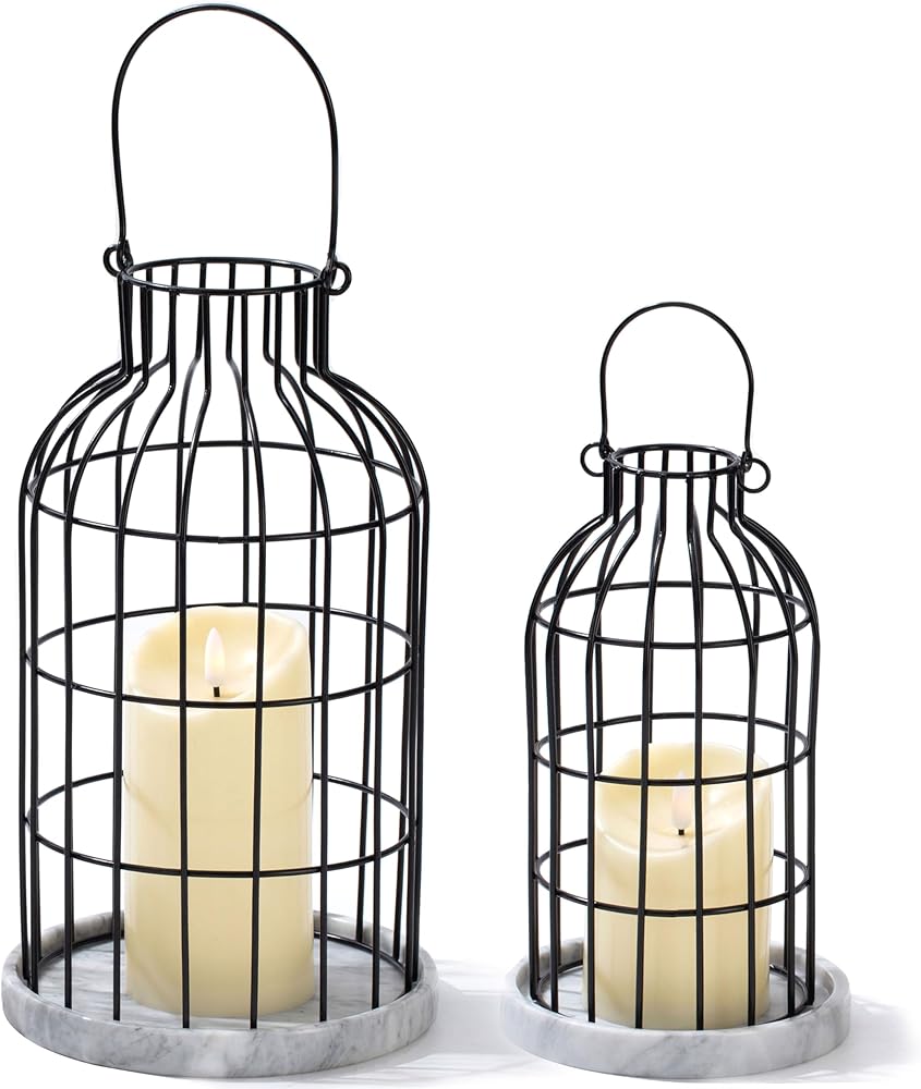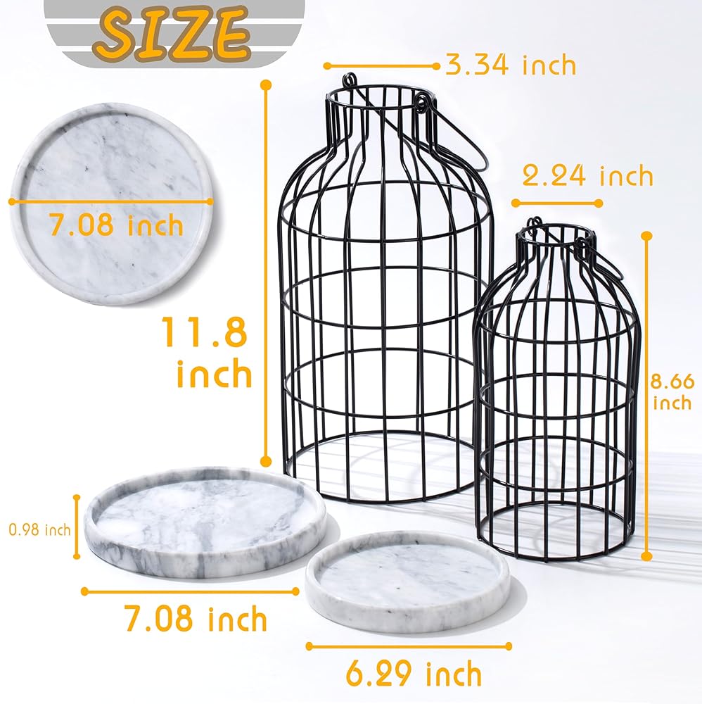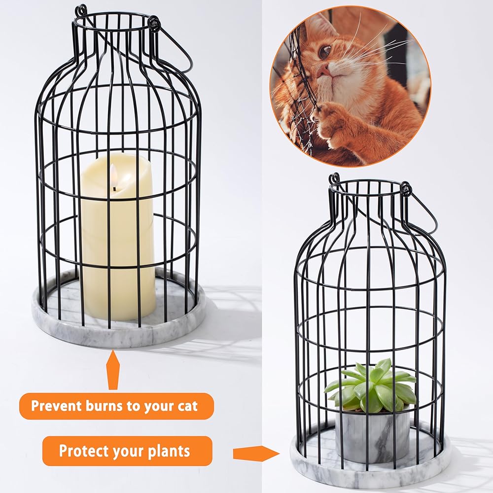 【مادة فريدة】فوانيس الشموع المزخرفة الخاصة بنا مصنوعة يدويًا بدقة بإطار معدني أسود قوي وقاعدة رخامية طبيعية، مما ينتج عنه مزيج رائع من المواد. ارتقِ بديكور منزلك بطريقة مميزة حقًا مع هذه الفوانيس الساحرة! سواء تم استخدامها كديكور للطاولة أو الأرضية، فإنها تعزز أي مكان داخلي أو خارجي دون عناء. (الشموع غير متضمنة)