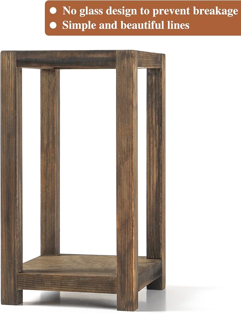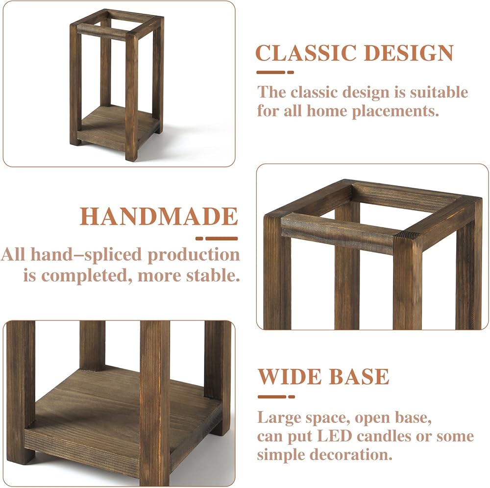 Great for holiday decorating or all year long, the possibilities are endless! Made to last, these lanterns can be used season after season. Lantern holds up to a 4” diameter pillar candle. Candles not included. Although these lanterns are open top style, they are made of wood so LED candles are highly recommended