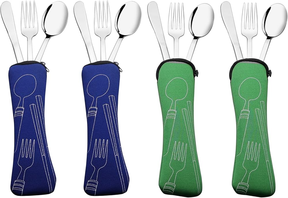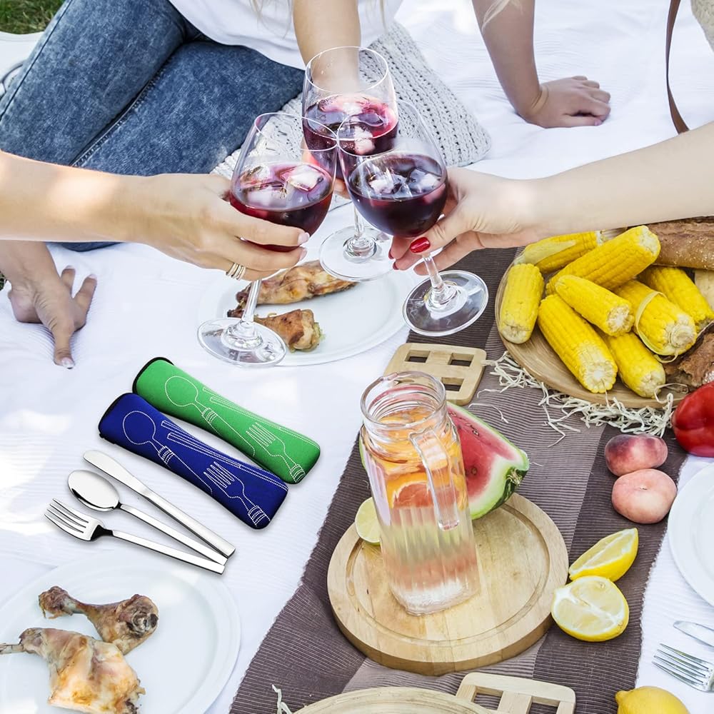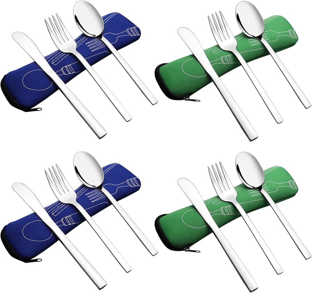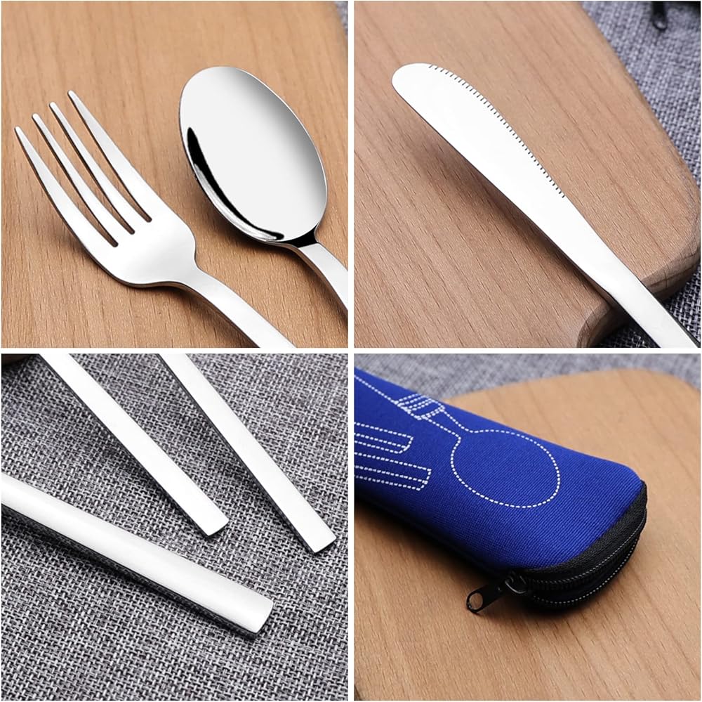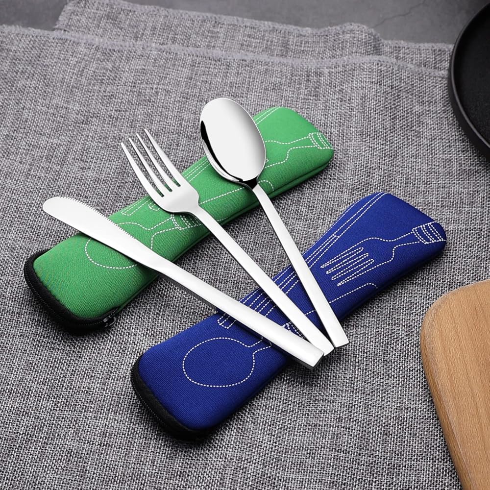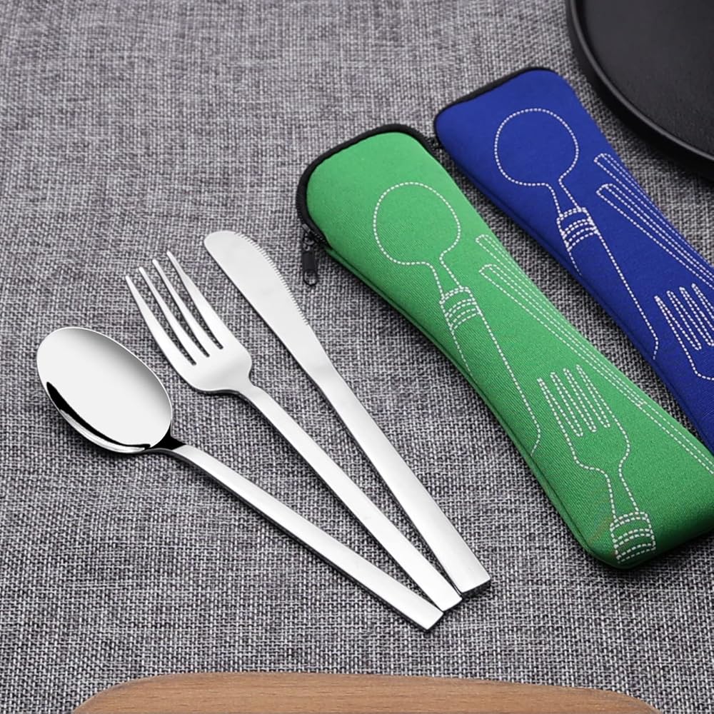 أدوات مائدة للتخييم من الفولاذ المقاوم للصدأ مع حقيبة حمل، مجموعة من 2