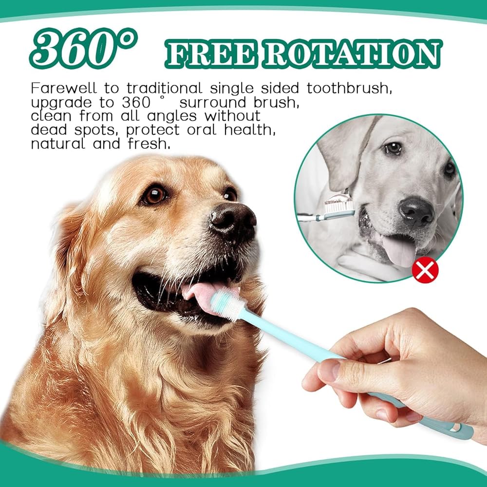 • ⭐【Wide Application】The dog toothbrush allows you to remove plaque on your pet's teeth that can harden and cause tartar, reducing plaque and tartar buildup. Daily use of a dog toothbrush can reduce the risk of dental and gum problems and improve your dog's health. Suitable for all dog and cat breeds.