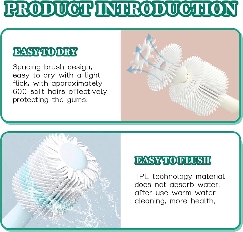 • ⭐【360°Brush Head】360-degree compact brush head with fine workmanship and implanted silicone wire bristles.