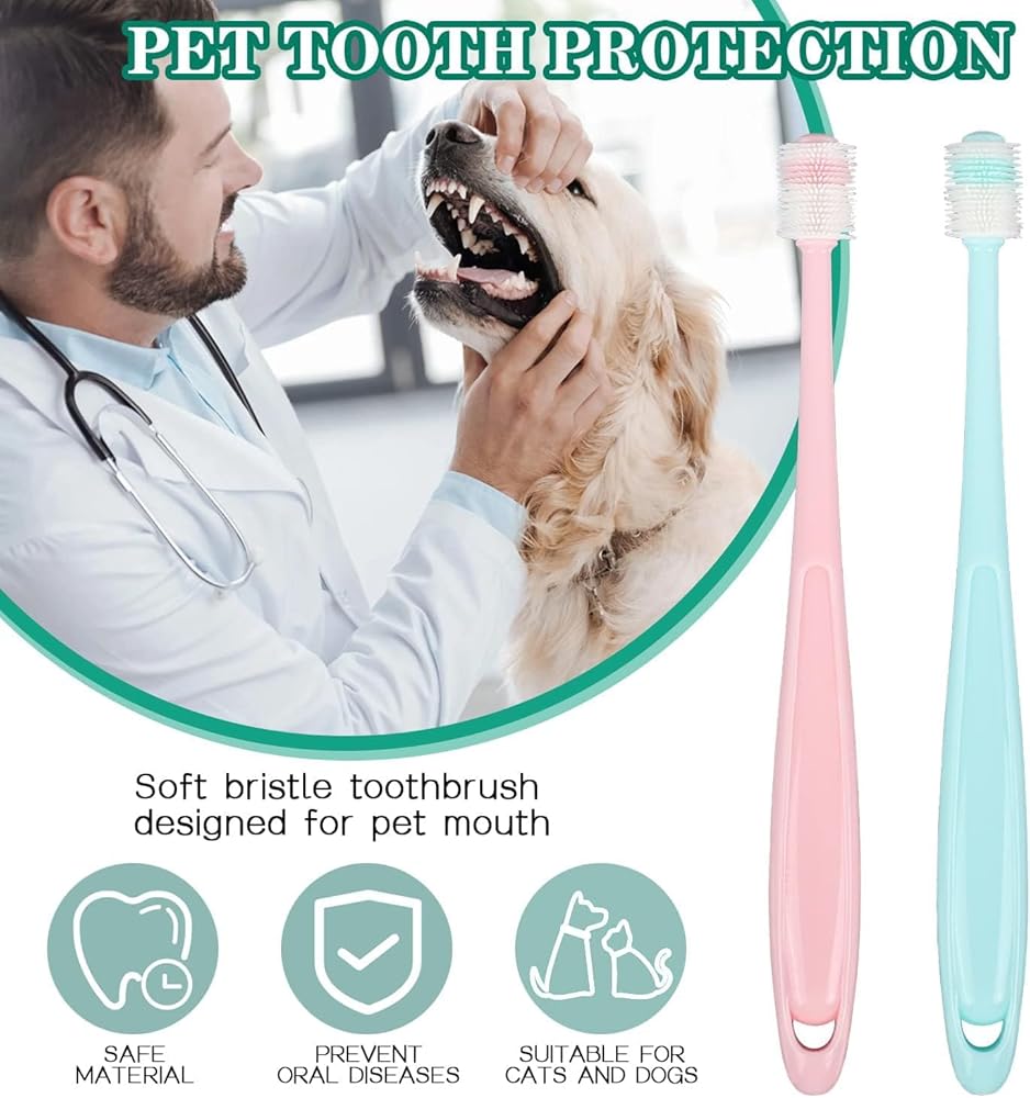• ⭐【High Quality Material】The pet toothbrush handle is made of safe silicone material, which can better grip the toothbrush and is not easy to slide. Extra soft bristles keep your pet more comfortable and won't hurt or damage your pet's gums and teeth.